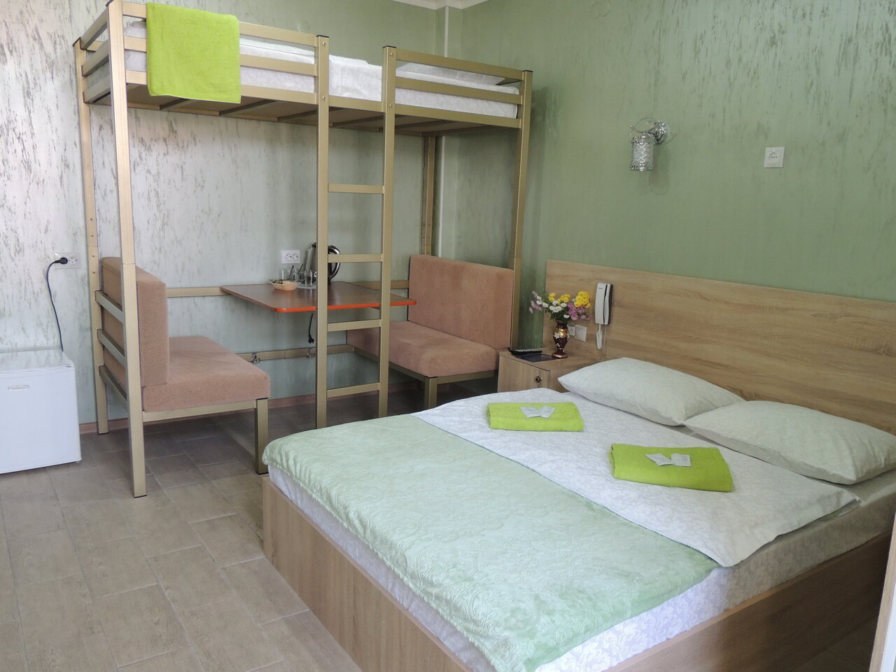 Трехместный номер с кондиционером, телевизором, WiFi, холодильником, чайником(чай,кофе,сахар )Номер очень достойный. Останавливались 23.07.21 Отдали 3000. Остались довольны.