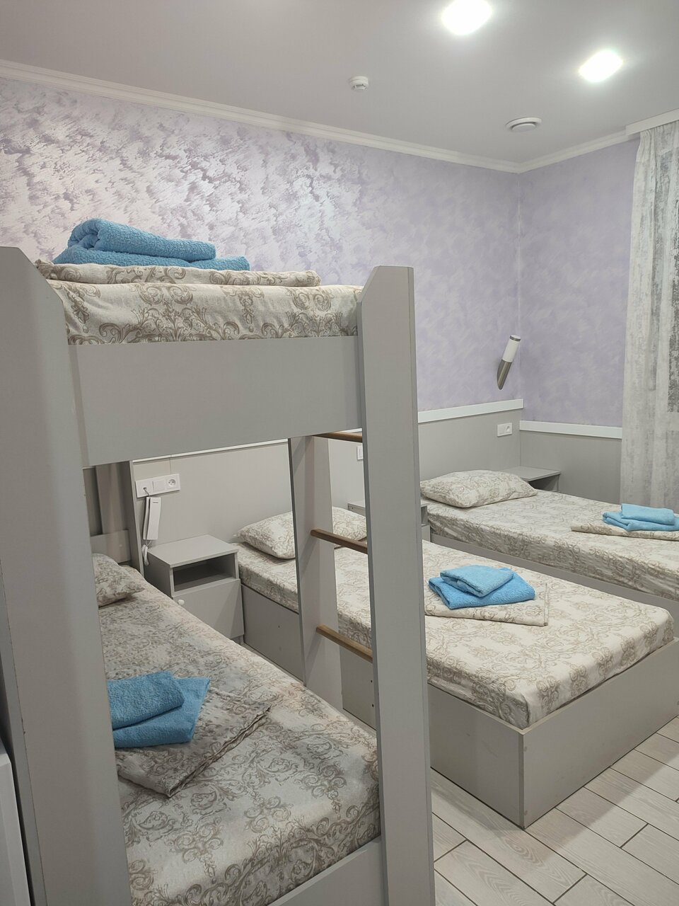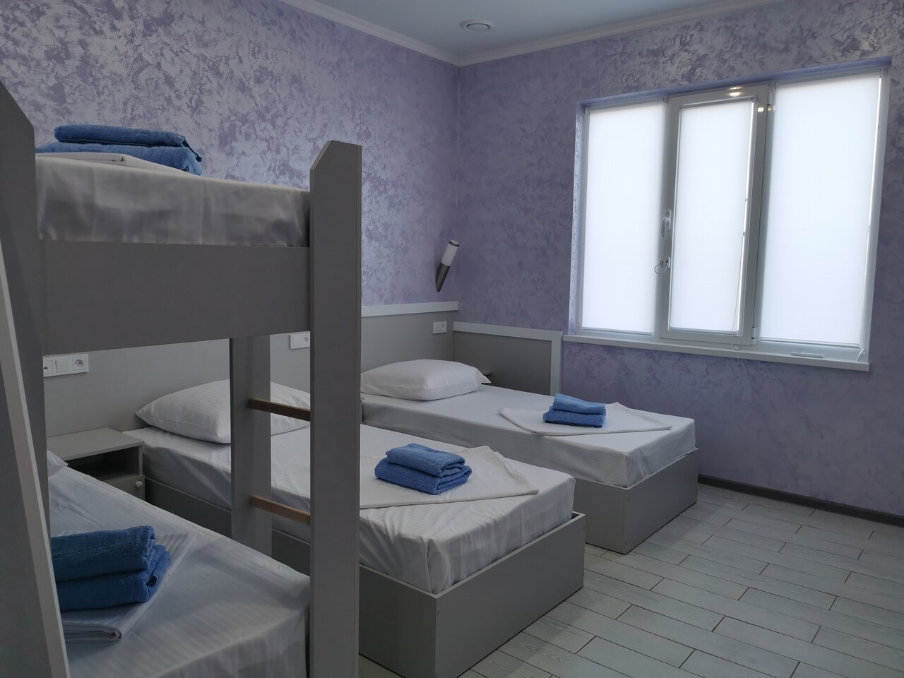 Ночевали одну ночь, ехали из Сочи в Москву. Брали два номер: трёхместный(три односпальные кровати) и номер с двуспальной кроватью+двухъярусная. Хорошие матрасы, тёплое помещение, хорошее постельное белье. Я прям выспалась! Спасибо!