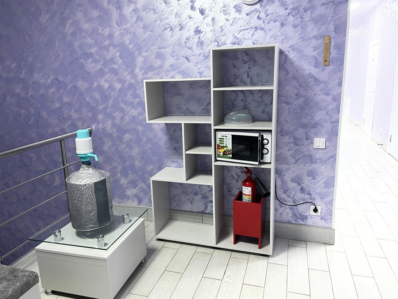 Отличный новый отель, всё чисто, аж слепит. Мы брали семейный номер. В номере есть чайник, чашки, чай, кофе. На этаже кулер с водой и микроволновка.