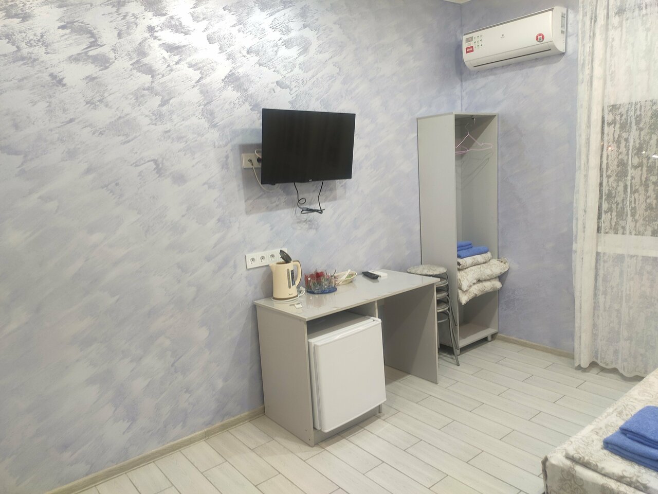 Отличный отель. Заезжали с семьёй переночевать по дороге с моря в Москву. Номер Семейный чистый, уютный. В номере одна большая кровать и одна двухярусная кровать для детей. Есть чайник, холодильник, кондиционер, телевизор, чай в пакетиках, сахар. Бесплатная парковка напротив гостиницы. Рядом есть кафе Вкусно и Точка и столовая. Рекомендую.