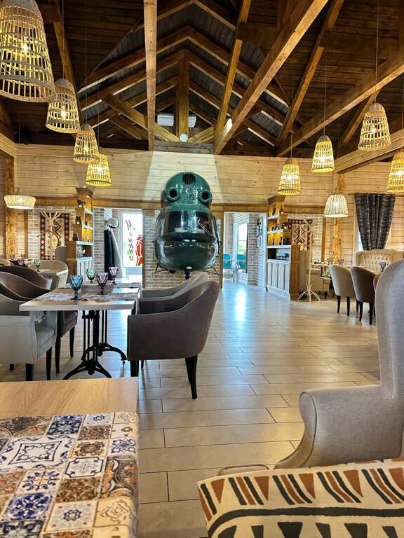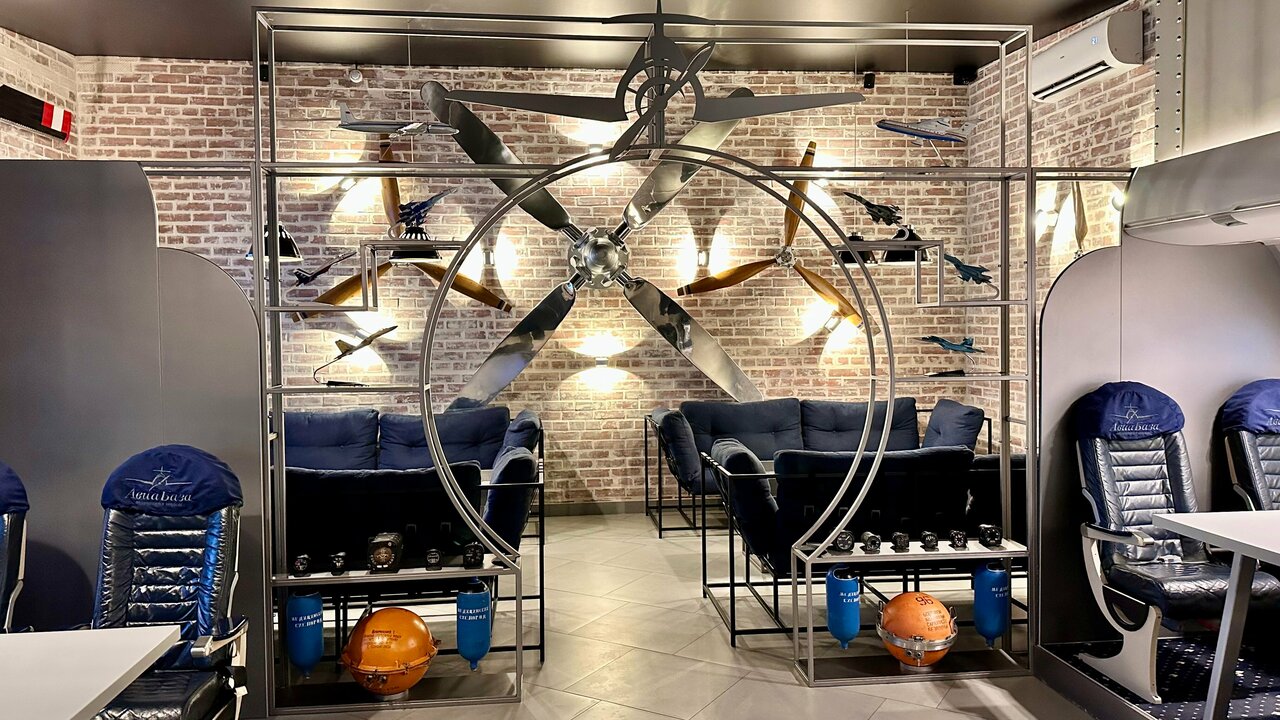 Отличная база отдыха. Необычная стилизация тематики Самолёты. Есть два номера в списанных самолётах ЯК-40 и Ил-18. Жили в первом из них. Очень понравилось, очень необычно. Ресторан Мимино шикарный! Классная атмосфера, вежливое обслуживание. Были на базе ранней весной, но, думаю, летом там гораздо интереснее.