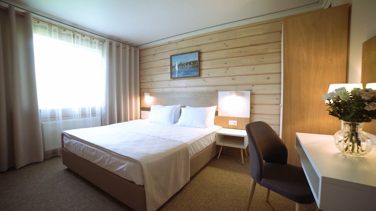 номер 'Люкс' (максимальное размещение 4 чел)Просторная гостиная, персональная терраса, спальная комната с кроватью размера KING SIZE.В стоимость включено проживание 2 чел, завтрак+ужин, посещение аквапарка. Стоимость проживания указана за 1 сутки.