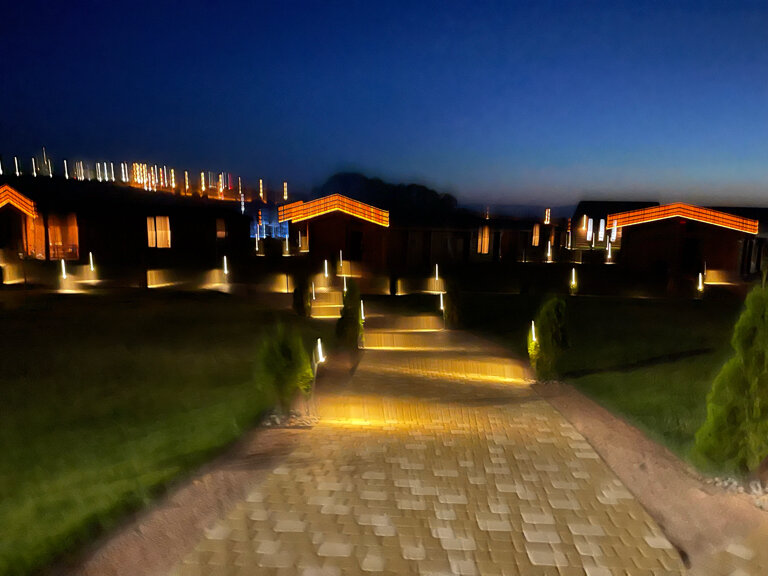 Очень красивая база отдыха! Останавливались в самолёте, это очень необычно и интересно. Персонал доброжелательный, территория большая и чистая. В номере было все самое необходимое, но не хватало фена и пары пакетиков чая. Ночью все красиво светится и очень тихо. Впечатления самые благоприятные, спасибо за отдых