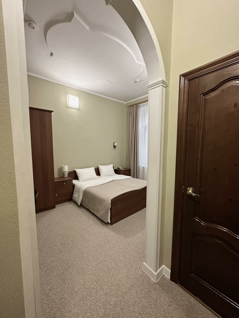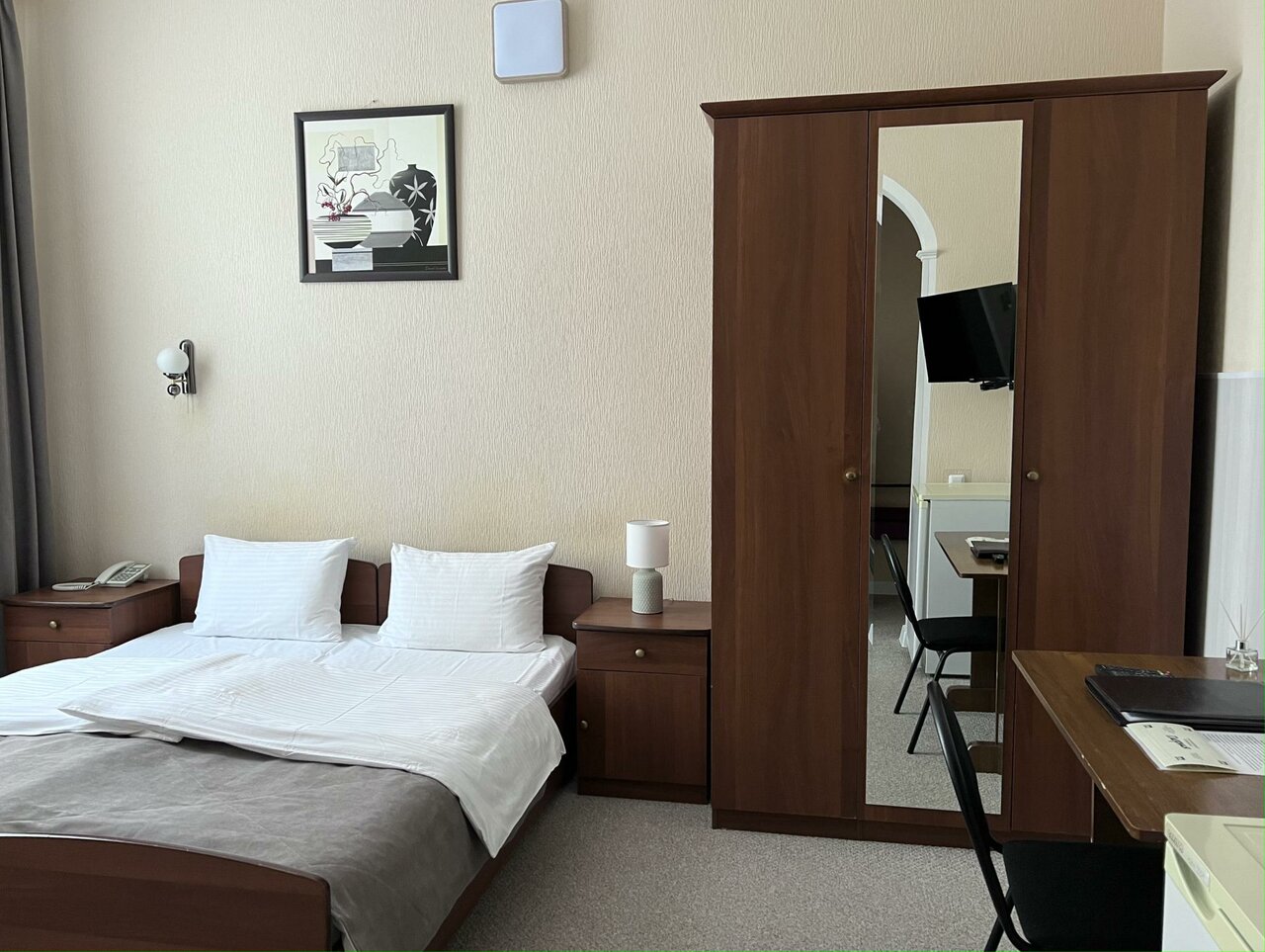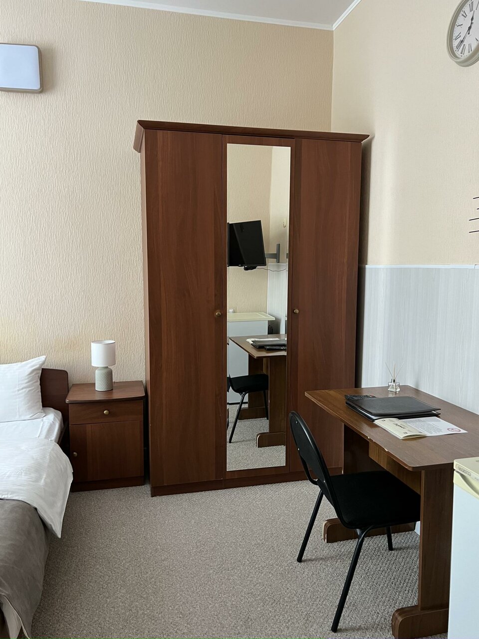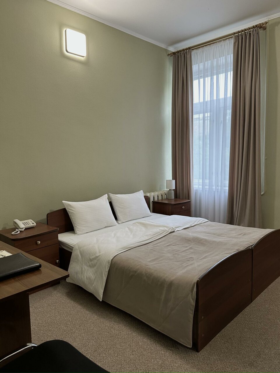 Гостиница довольно старая в городе. Имеет статус 3 звезды. Большие комнаты, вежливый персонал. Уборка на 4 из 5, мебель в принцыпе не очень старая, довольно комфортно. Есть кафе, но готовят не очень. Перекусить на скорую руку можно, но не больше того.