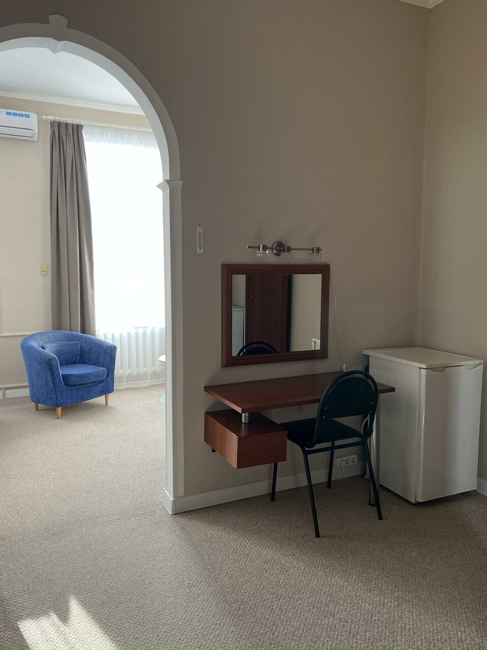 Ну на на 3 звёзды скажу откровенно не тянет от слова совсем! Ночевали в люксе, Кондер шумный, телевизора в комнате нет, в другой комнате стоит телевизор, ни один канал не показывал. шведского стола нет, при заселения выбрали из списка, что мы будем утром кушать.