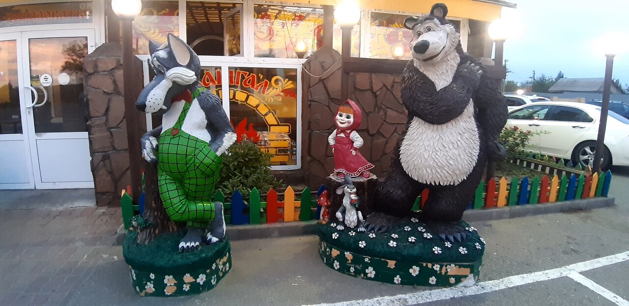 Вкусно, чисто. Персонал вежливый. Обстановка тоже приятная. Останавливаемся не в первый раз. Мультяшные фигурки видны издалека и позволяют водителю вовремя среагировать для остановки.