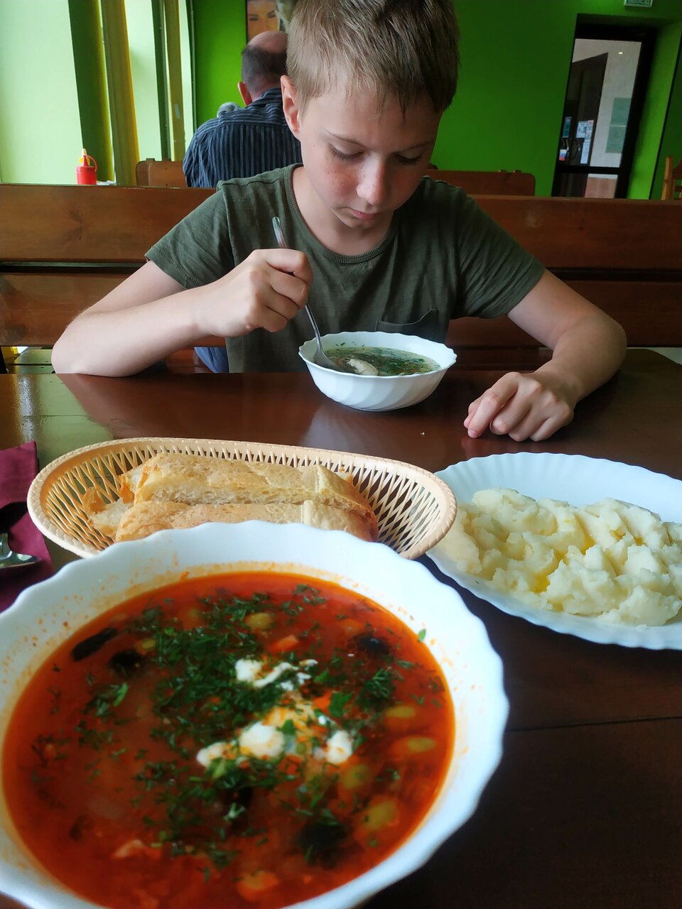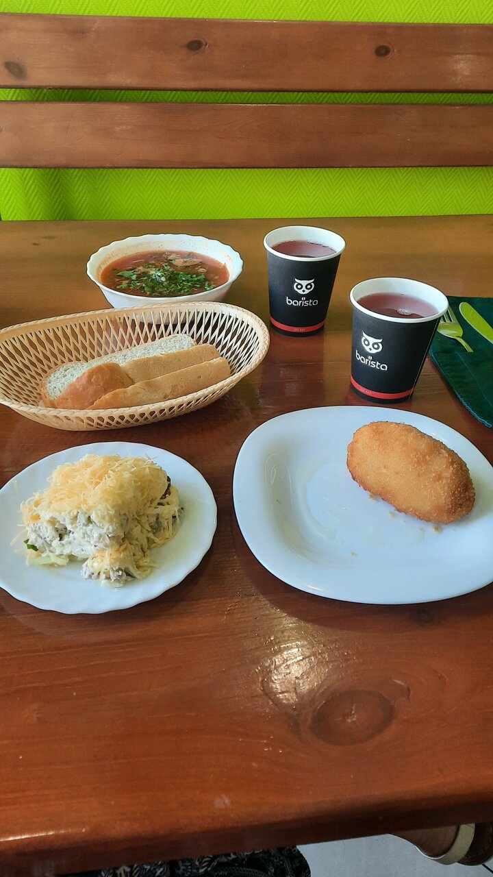 Заезжали покушать, меню разнообразное, но ждали долго, по мне слишком многолюдно, прям поток одни ушли, другие пришли, но это понятно, кафе на трассе , проезжающих много, в туалете бы почаще убирались, а так в целом неплохое кафе, еда на 4-ку, есть можно, не сказать что вкусно, обратно ехали уже не стали заезжать в это кафе