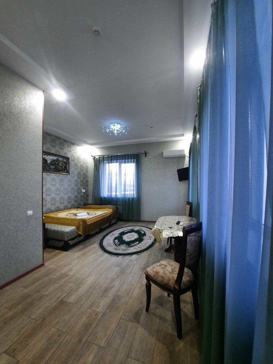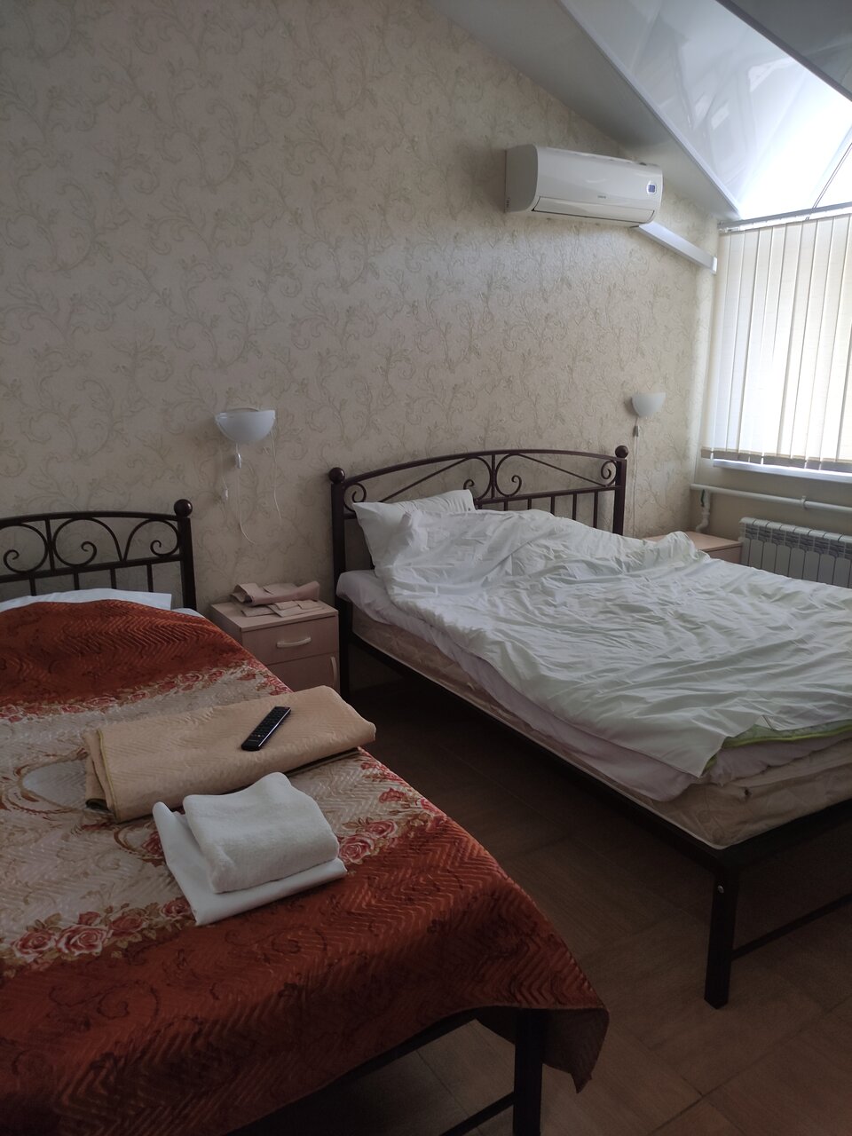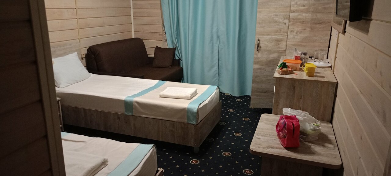Удобное место для ночлега по пути на море на машине, много номеров, есть и для большой семьи. Номера чистые, кровати если одноместные, то достаточно широкие, много места для парковки во дворе. Номер надо просить с окнами во двор, а то когда выходят на трассу — шумно, всю ночь едут фуры и другой транспорт. А лучше забронировать заранее, в пик сезона часто не бывает свободных мест. Есть заправка Лукойл, прямо через дорогу, очень удобно!