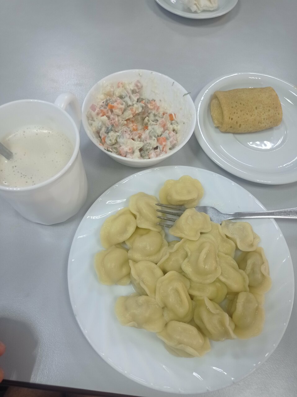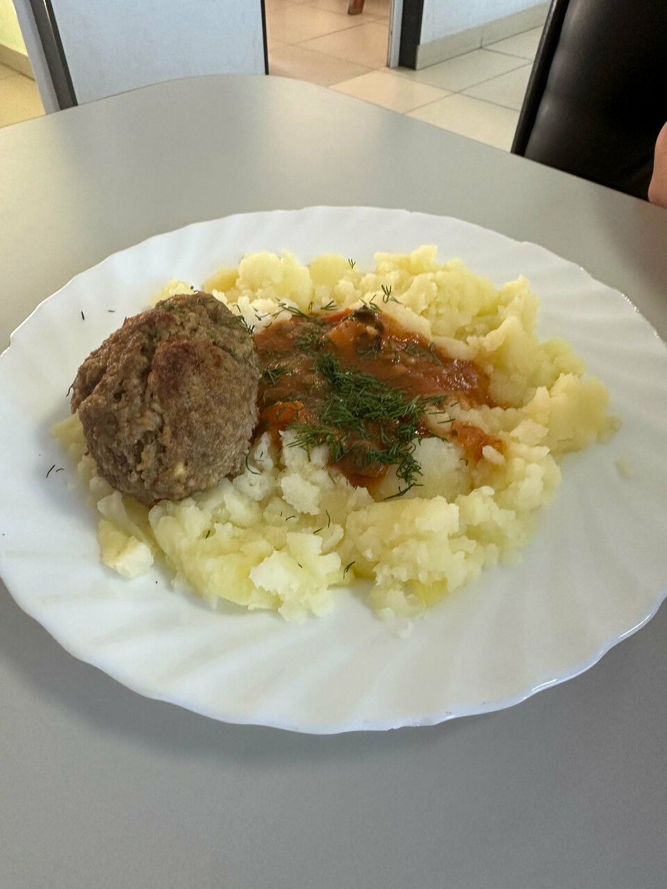 Заехали на завтрак! Заказали салат оливье, заправка ужасный майонез, уксусный, есть не возможно. Кофе Латте, одно молоко, кофе самого нет. Блинчик микро размер. Пельмени магазинные, не говяжьи.