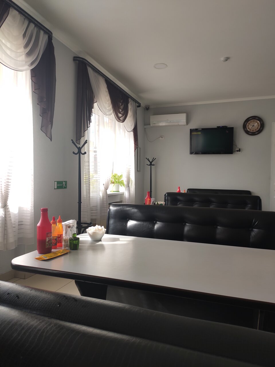Уютные, чистые, симпатичные номера. Кафе круглосуточное, что очень удобно. Смогли поздно поужинать с дороги и рано позавтракать перед отъездом. Персонал отзывчивый и дружелюбный. В кафе вкусно и приятно. Цены приемлимые.