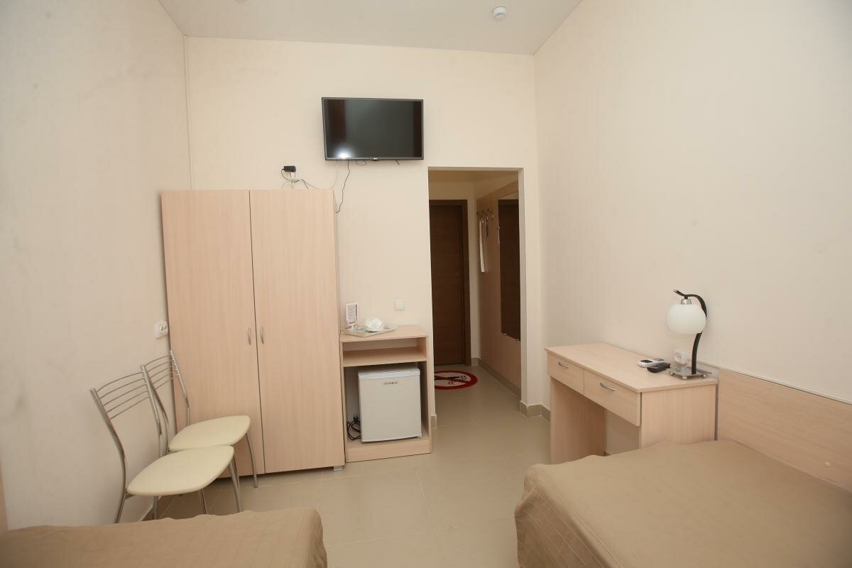4х местный номер. ▫2-спальная кровать с ортопедическим матрасом▫Диван▫Телевизор.▫Холодильник▫Кондиционер.▫Фен.▫Душ и сан