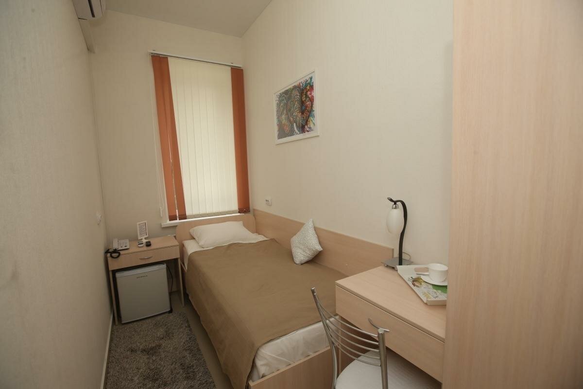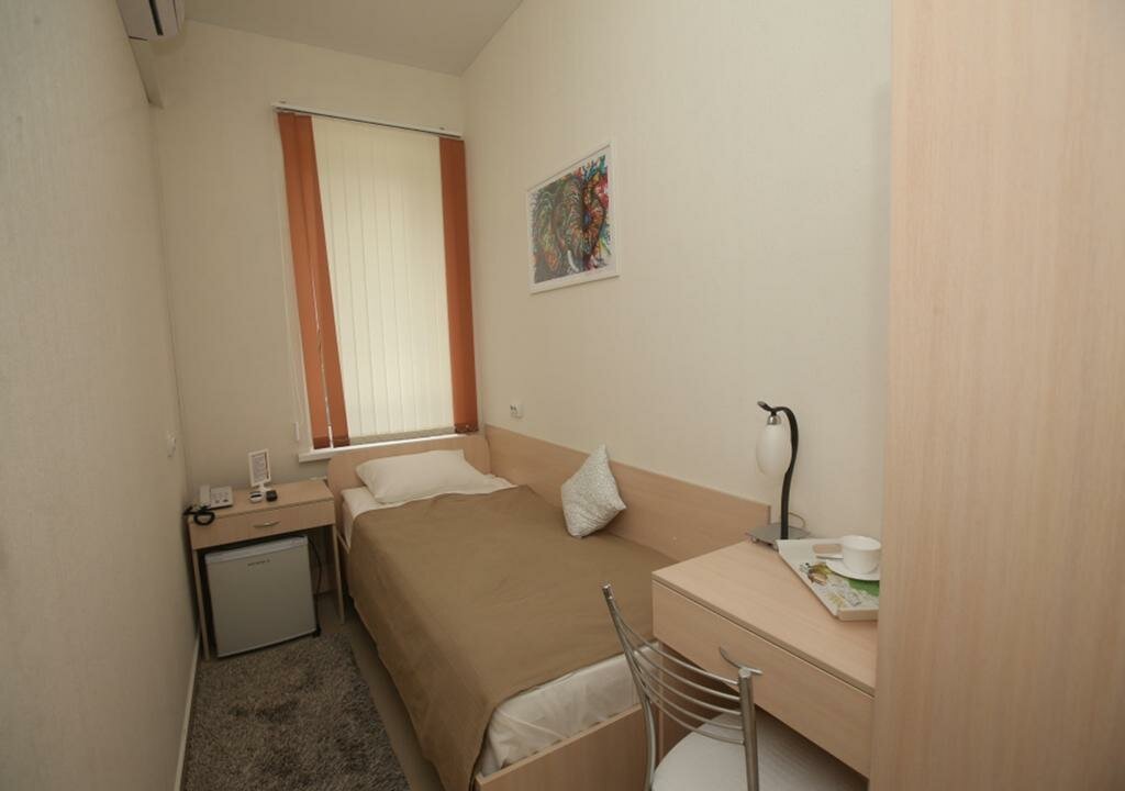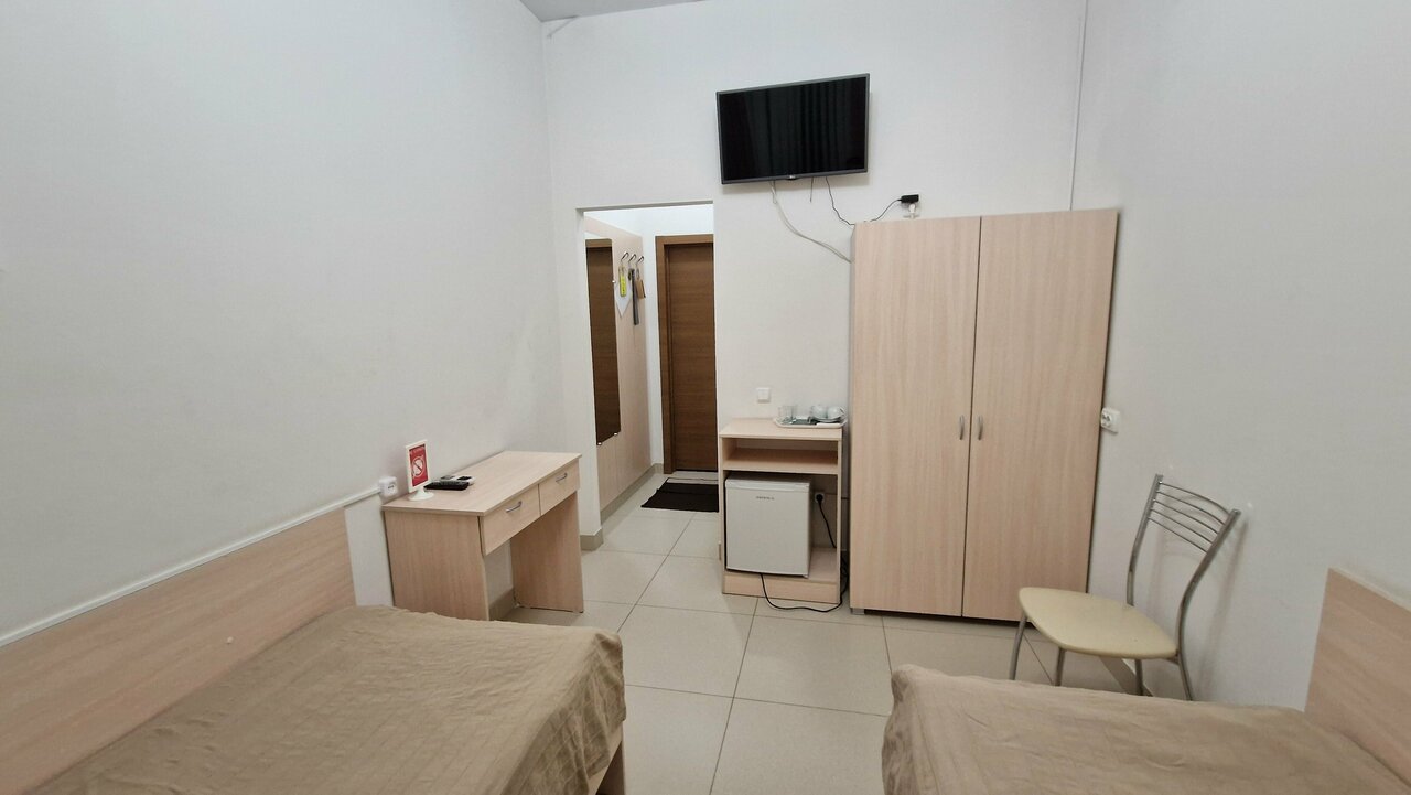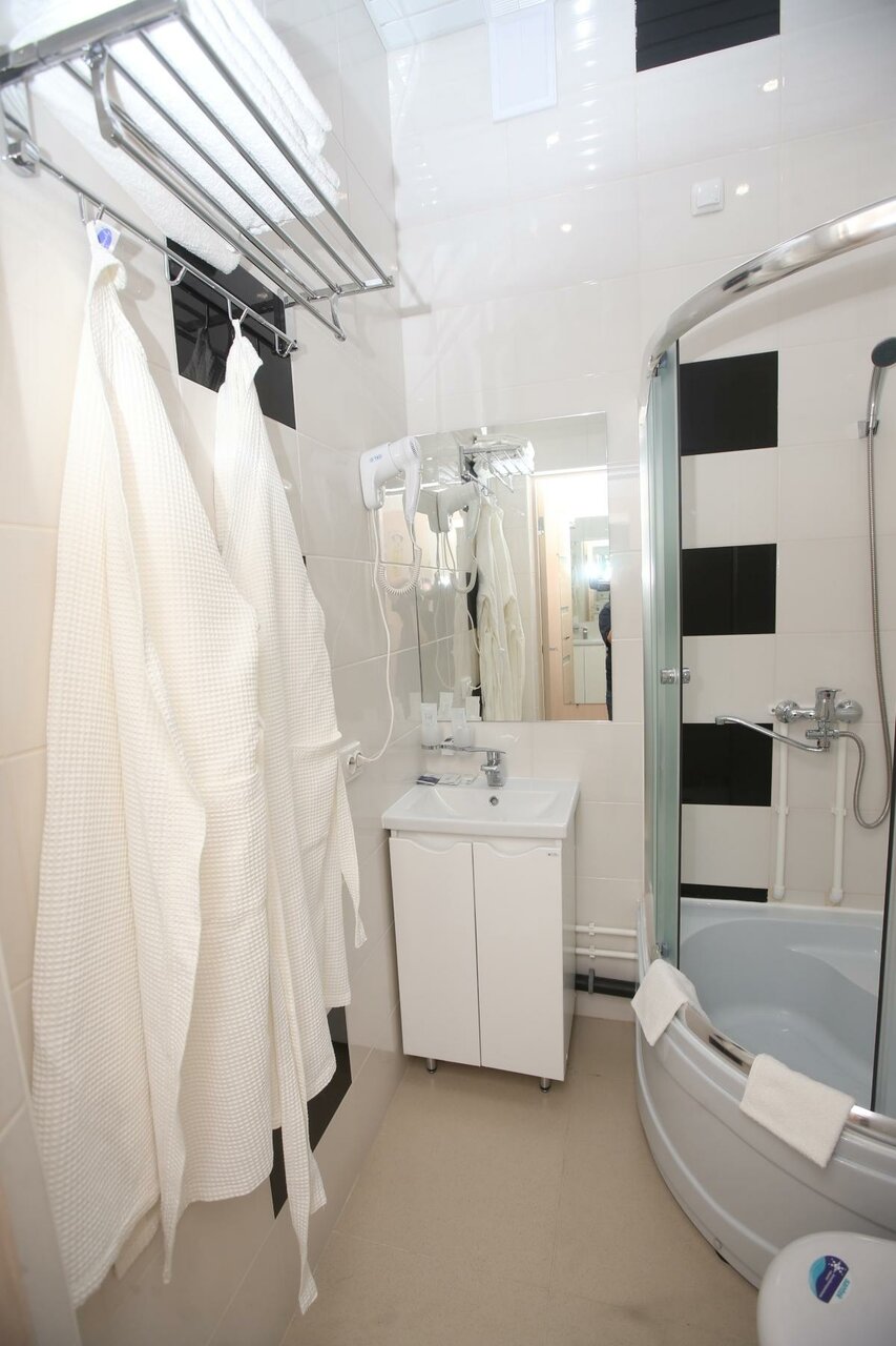 Расположился в номере эконом. Номер маленький. Санузел чуть больше чем в вагоне. Но всё с лихвой окупается чистотой, аккуратностью. Все новое и работает. В номере приятно находится. Очень приятный и отзывчивый Администратор по имени Марина. Завтрак в стоимость не включен, но его можно заказать (принесут в номер). В номере шкаф, столик, стул, телевизор, небольшой холодильник. Также есть кондиционер. В ванной душ, раковина, унитаз. Присутствуют одноразовые мыло, шампунь, зубная щётка, тапочки. Есть банный халат. В целом очень приличная гостиница с хорошей обстановкой и демократичной стоимостью.