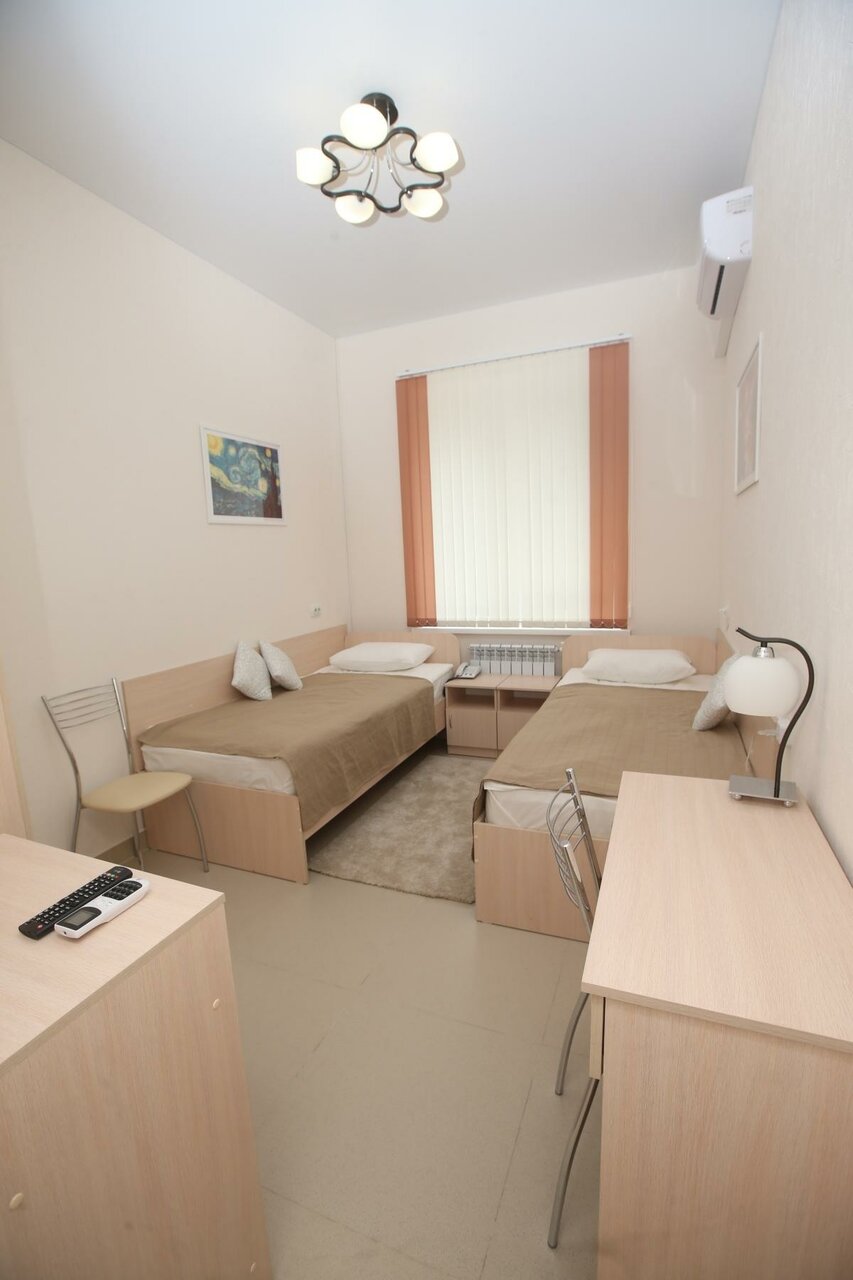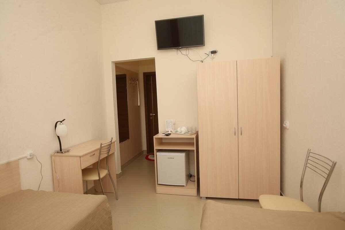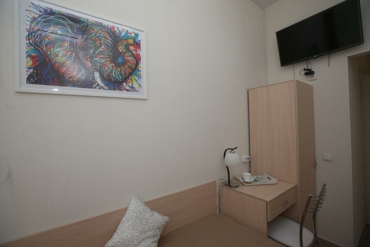Расположился в номере эконом. Номер маленький. Санузел чуть больше чем в вагоне. Но всё с лихвой окупается чистотой, аккуратностью. Все новое и работает. В номере приятно находится. Очень приятный и отзывчивый Администратор по имени Марина. Завтрак в стоимость не включен, но его можно заказать (принесут в номер). В номере шкаф, столик, стул, телевизор, небольшой холодильник. Также есть кондиционер. В ванной душ, раковина, унитаз. Присутствуют одноразовые мыло, шампунь, зубная щётка, тапочки. Есть банный халат. В целом очень приличная гостиница с хорошей обстановкой и демократичной стоимостью.