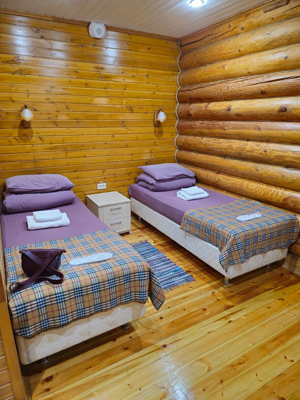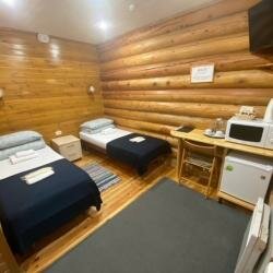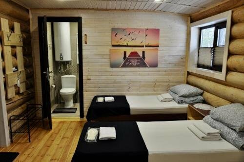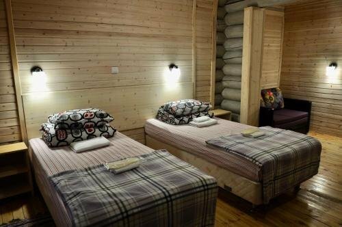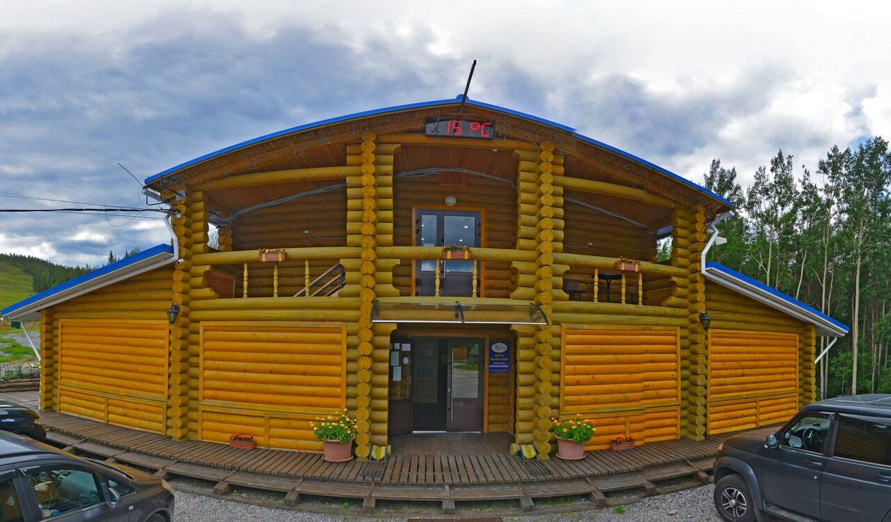 Гостиничный комплекс 5*, выполнен из бревна, внутри современные номера с тёплыми полами. Недостатков нет. Отличный современный банный комплекс. Пункт проката горнолыжного оборудования.Рядом подъемник. Учтивый персонал. Рекомендую.