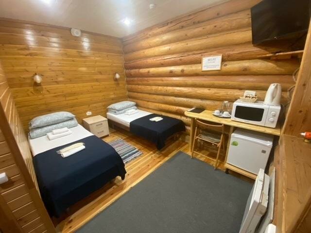 Останавливались второй раз, брали номер эконом. Жили на втором этаже, вид на лес. В лесу видели белок. В номере есть все необходимое. Внизу есть кафе, предлагали завтрак. Также можно поужинать. Есть баня, мангал, беседки, вокруг красивый лес. Удобное расположение, кто собирается путешествовать по Терскому берегу.