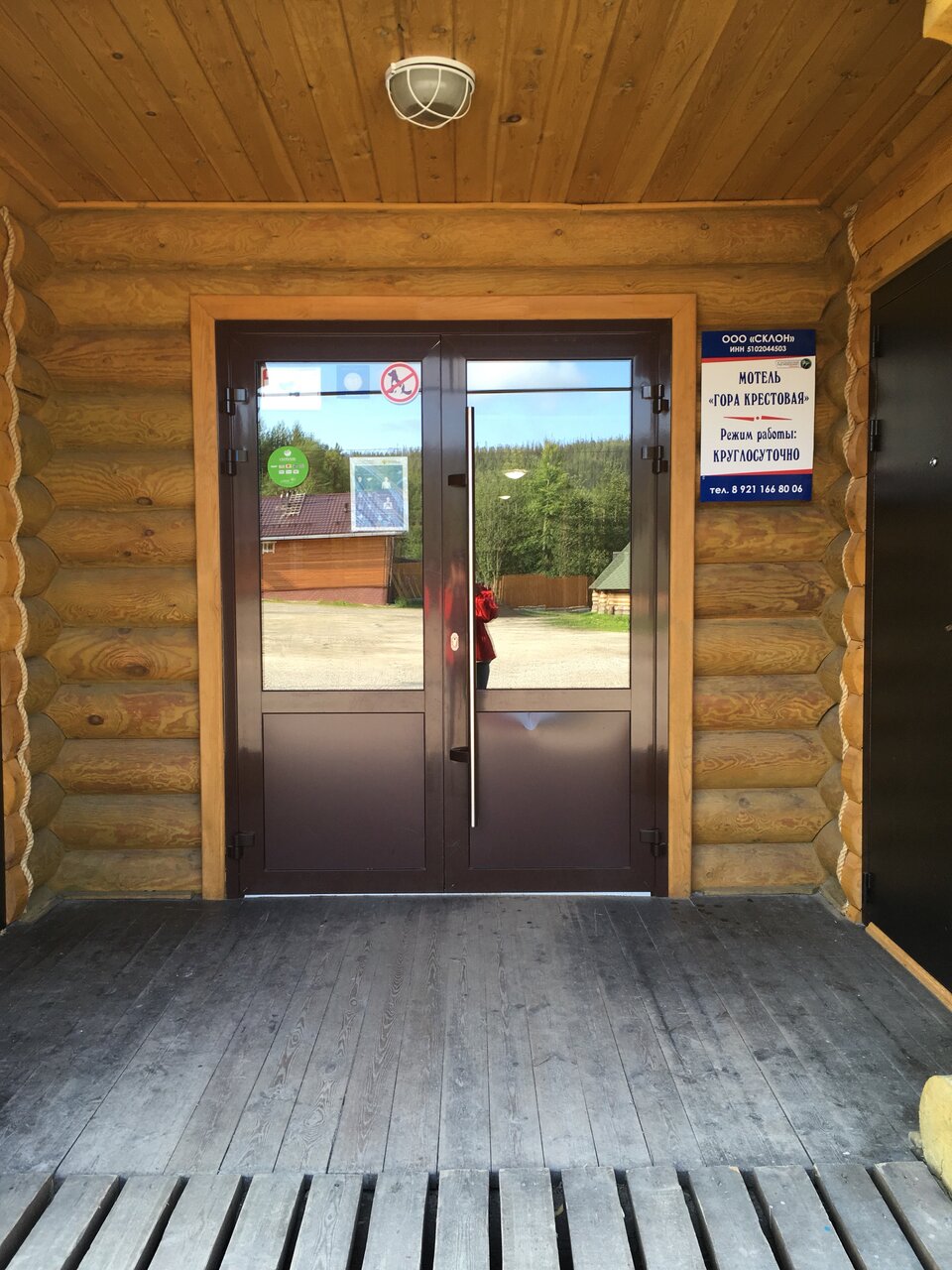 Заезд — с 14:00, выезд — до 12:00. Подробнее: http://krestovaya51.ru/ Телефон для бронирования: +7 (921) 166-80-06.