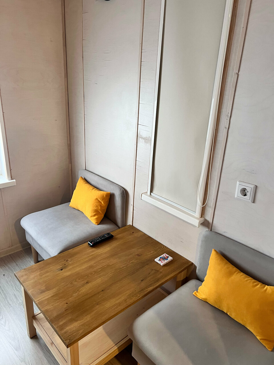 Отличное место, есть все необходимое и ты в отдельном домики, хорошо обстановлено из икеи. Убодный заезд, звонишь, тебе говорят номер от ячейки, берешь ключи и так же их потом оставляешь. Есть тёплый пол