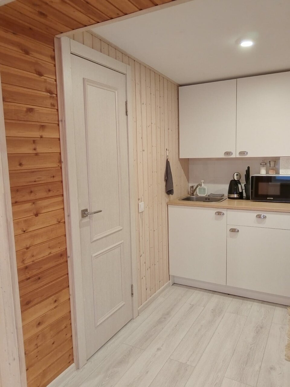 Хороший домик с отдельным входом за небольшие деньги. Все новое и чистое, полы с подогревом Единственное, шторы на окнах нужны с более сильным затемнением, в полярный день в номере светло.