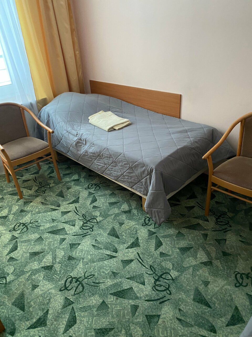 Отличное место! Окраина города, тишина, сосны. Номер на двоих. Кровати хорошие, постельные принадлежности достойные. В номере душ и туалет. Вежливый и предупредительный персонал. Спасибо большое за отдых!