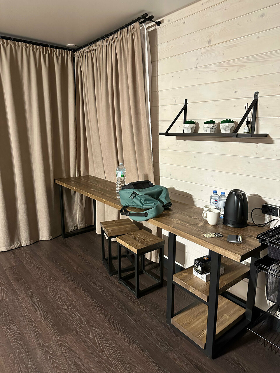 Так, давайте по порядку) конечно, на стадии бронирования, сервис и фото меня очень зацепили и я решила не скупиться (цена была не маленькой), а вот подъехав к гостинице я немного офигела это оказалась лютая промзона, НО надо понимать, что отель в первую очередь рассчитан на любителей экстремального спорта и им как удобна такая локация! Поехали дальше! Домики оснащены потрясающе (мебель новая, есть абсолютно все для комфортного прибывания, чистота на ВЫСОЧАЙШЕМ УРОВНЕ, еда ВКУСНЕЙШАЯ) я думаю за всё это низкий поклон хозяйке Елене Про промзону вы забываете тут же, как только за вами закрывается дверь! И дальше чистый кайф и расслабление) Хотелось бы только 1о, чтобы вайфай дотягивал, так как мобильная связь там увы работает очень плохо