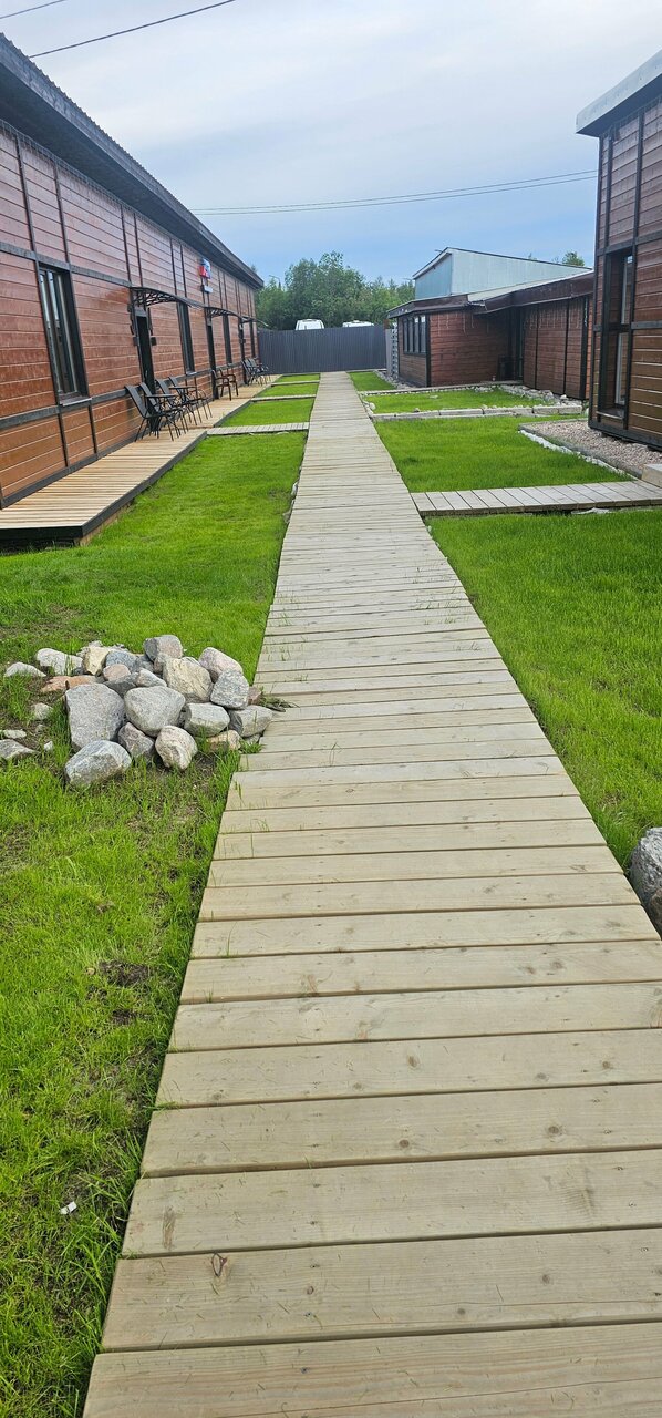 Оказались в Кандалакше рано утром в разгар летнего сезона. Владельцы отеля единственные, кто в 6 утра отозвался на наш срочный поиск жилья) На небольшрй территории, где располагаеются домики все на уровне. Очень качественные номера! Отличный ремонт. Номера по принципу апартаментов. Функциональная кухня, чистая хорошая посуда. Очень удобные матрасы на кроватях. Особенно после 3х недель жизни в палатке Наконец-то удалось выспаться. Есть на территории баня и общее пространоство, где перекусить ( кафе-столовая). В стоимость аренды апартаментов входит еще и завтрак. За пределами территории приятный урбанистический пейзаж Но это совсем другая история.