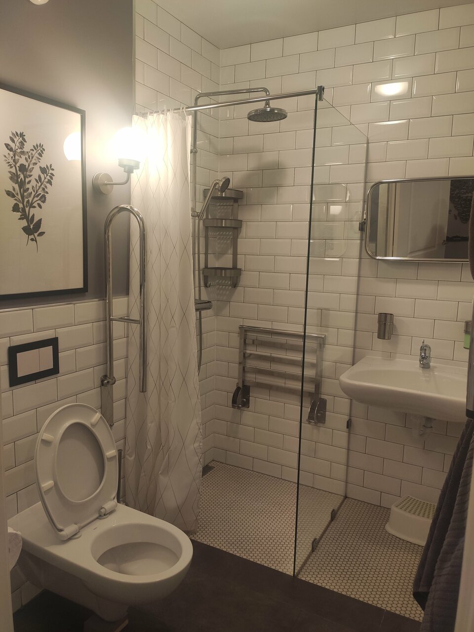 Удобно расположена, номера в скандинавском стиле, все удобства, халаты, мини кухня и холодильник.