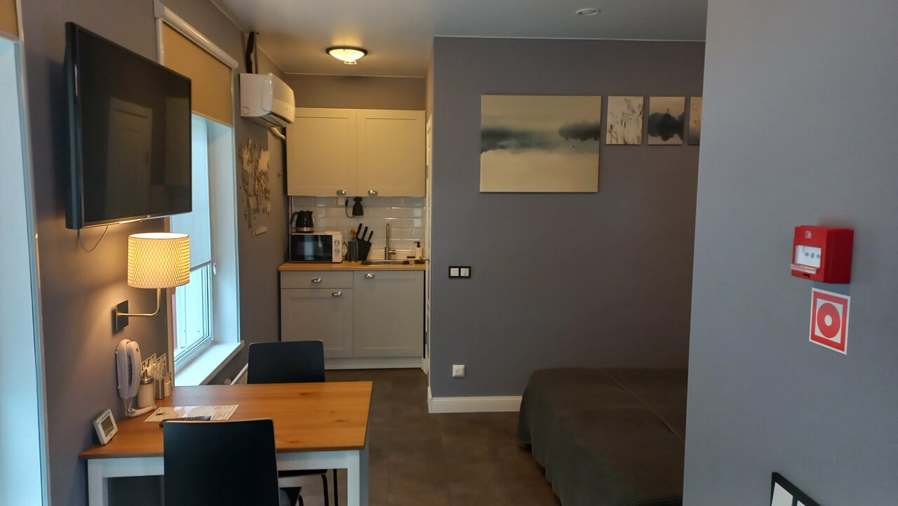 - Комфортные номера с кухней и техникой.; Скандинавский стиль интерьера.; Быстрое заселение.; Чистота и уют.; Удобная парковка.