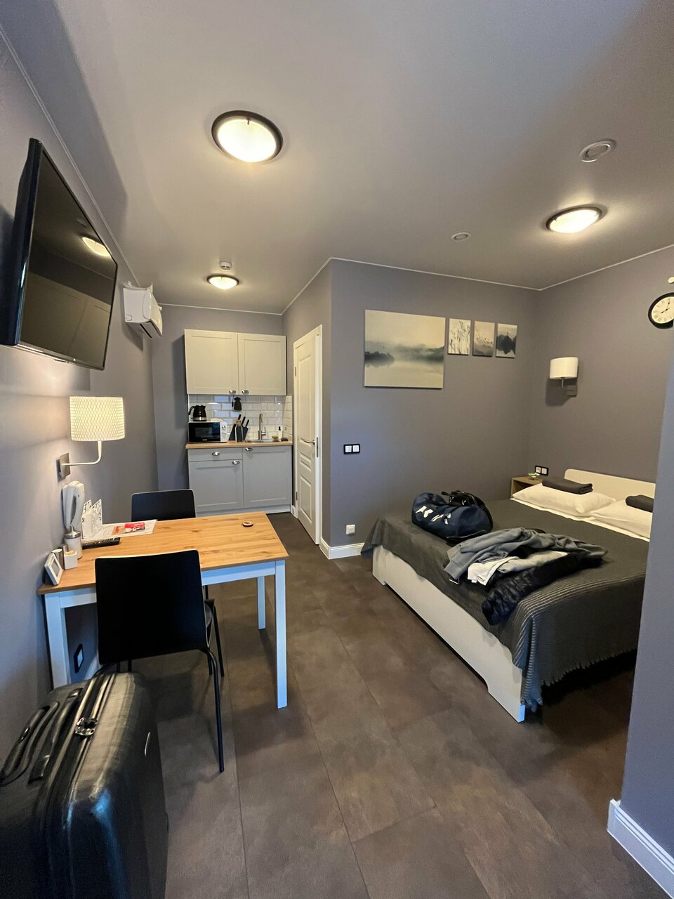 Замечательный отель! Удобная парковка, чистые номера. Великолепная душевая! Маленькая кухня, со всем необходимым! Отзывчивый персонал.