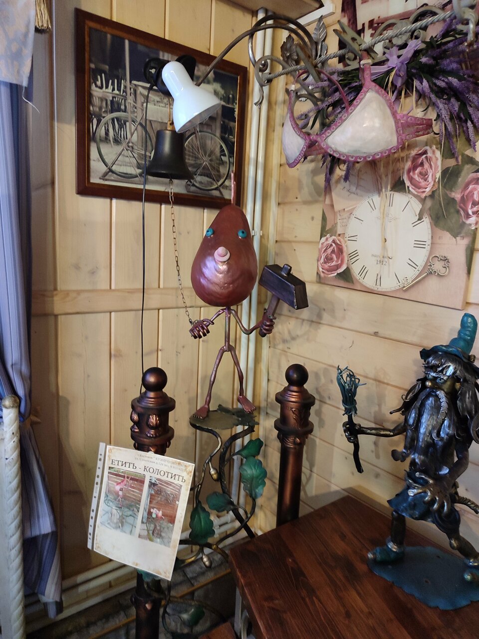 симпатичное место. Тепло уютно и 2 достопримечательности не выходя на улицу: частная коллекция подков и эвфемизмы в металле