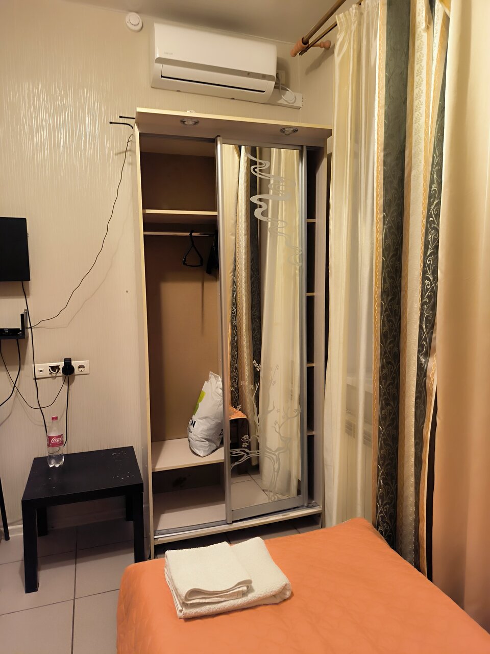 Из минусов: - Слышимость. Можно не прислушиваясь знать всё о чем говорят соседи, - Пружины ощущаются в кровати и на ней явно было разлито пиво. От этого всего было очень неприятно спать, - Запах в туалете, не смотря на табличку о запрете курения, табачный, - Сложности с парковкой. Из плюсов: - Очень порадовал кондиционер. Так как было уже прохладно, а отопления ещё не было, кондеционер очень выручил, - Чистые полотенца, -