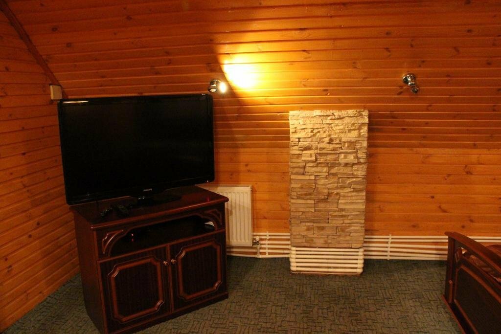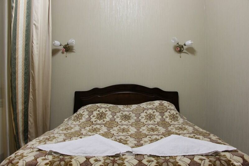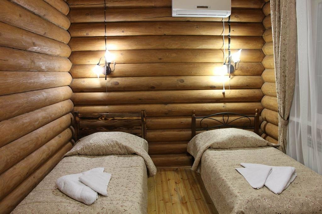 Гостиница пожившая, тапочек и халатов не ждите, лампочек во всех осветительных приборах тоже. Одна звезда за расположение отеля, думаю лучшее в городе. Одна звезда за приятного администратора Наталью. Одна звезда за белье — идеально чистое, целое, неплохого качества. На этом плюсы заканчиваются. Бронировали номер с одной двуспальной кроватью, по факту — две отдельно стоящие односпальные. Банкет в кафе в ночь нашего пребывания исключил для нас завтрак в отеле, о чем так же забыли предупредить по телефону при бронировании. Паутина в номере. Электрический чайник с огромным слоем накипи. Из посуды в номере на двоих две чайные чашки и одна чайная ложка. Никакой другой посуды, а так же Чая, кофе, сахара в номере нет. Но в целом неплохо, есть отдельно стоящие домики разной вместимости, ухоженная территория.