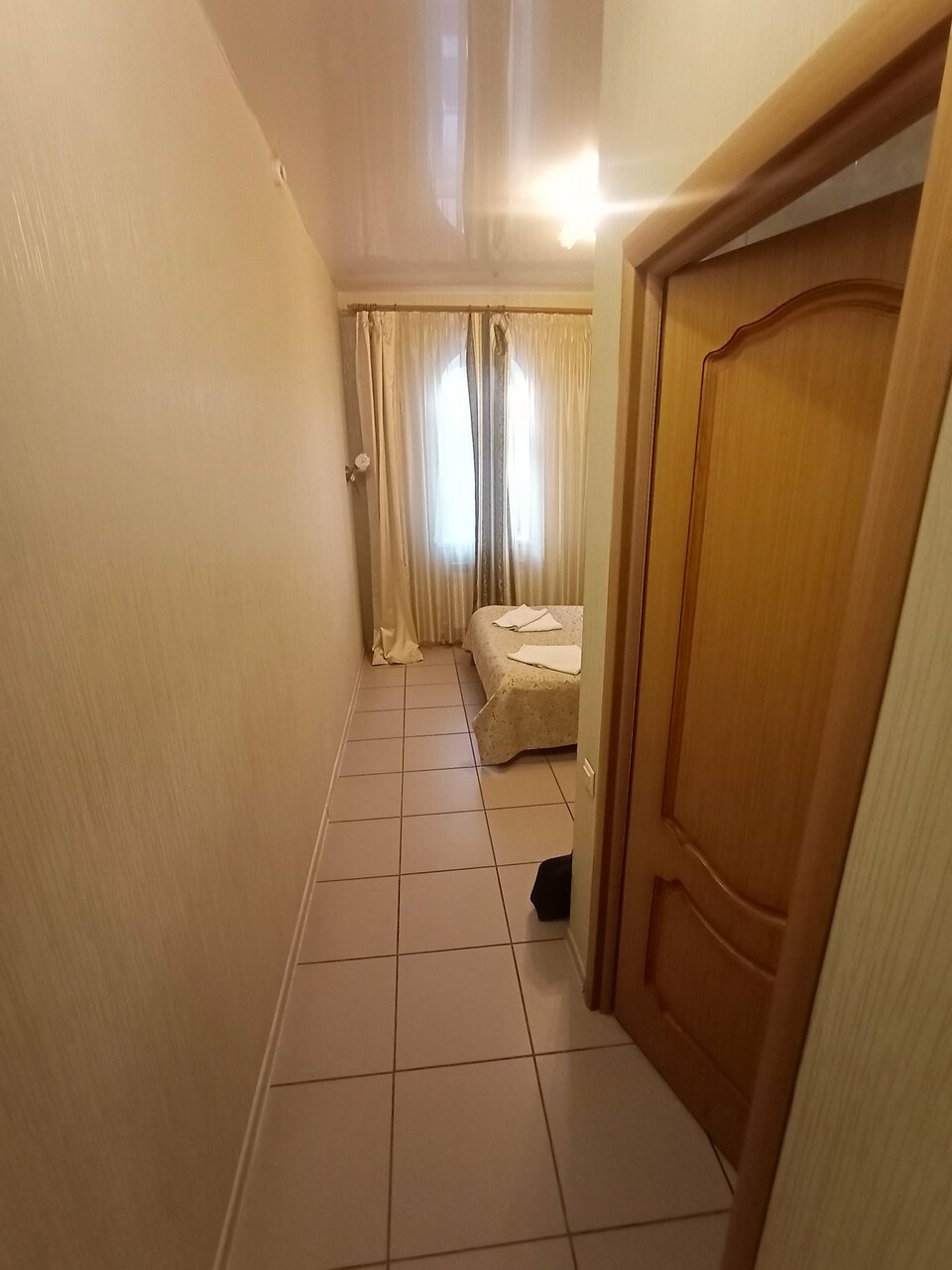 Хорошая гостиница, все понравилось. Без роскошеств, недавний ремонт, чистота, свежая сантехника. В номере был удобный санузел с отличным душем. Кондиционер, много розеток. Чайник и чашки в номере. На втором этаже в холле есть холодильник. Фото не соответствует, гостиница в городском доме, номера на 4 этажах. Возможно, есть и такой корпус, как на фото, врать не буду. Расположение практически центр. 5 минут пешком до автостанции. В другую сторону, по уменьшению номеров домов, та же Советская через пару кварталов становится самой красивой частью города со сталинками и старинными домами, упирается в сборную площадь и небольшую набережную. По сторонам приятные районы частной застройки, рекомендую выйти погулять.