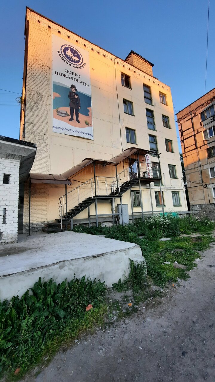 Здравствуйте.Это мини отель,так он позиционирует себя в г.Кемь.300 метров от ж/д вокзала. Рядом магазин Магнит, Пятрочка, ну и по мелочи.Здание, наверное, бывшего Советского общежития.Весь Второй этаж-это мини-отель.Есть кухня-столовая(два стола, 8 стульев.Плита 4 комкомфорки,духовка,эл.чайник,СВЧ, посуда, столовые приборы и т.д. и т.п. Есть стиральные машины. Душевые и туалеты разделены на разные блоки (два душа+два умывальника) (два унитаза+два умывальника). Я был в этом отеле 3 раза за 2021 и2022 год. Номера были чистыми на 4.Постельное бельё и полотенца всегда без замечаний. Минусы:Срашный первый этаж и лестница (это не объяснить, надо видеть ), кровати и матрасы,ну на троечку. Мне 44 года бывало ГОРАЗДО ХУЖЕ . Огромный плюс отеля-это персонал (администраторы девушки). Всегда стараются помочь по любым вопросам. Ну, короче, всё на нормальную троечку, кроме админов, они молодцы.
