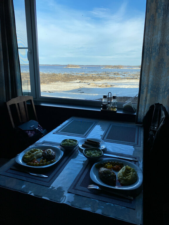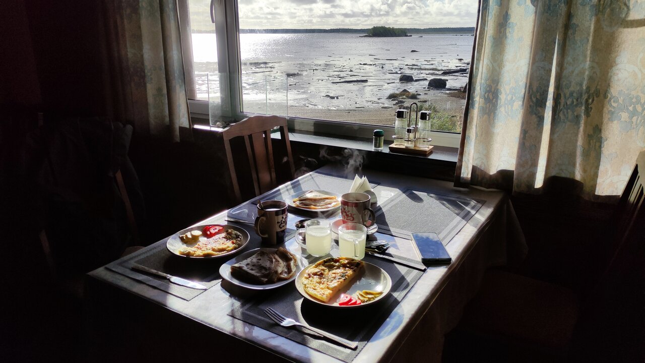 супер. хозяин имеет свой катер и возит на Соловецкие острова. завтраки и ужины на высшем уровне