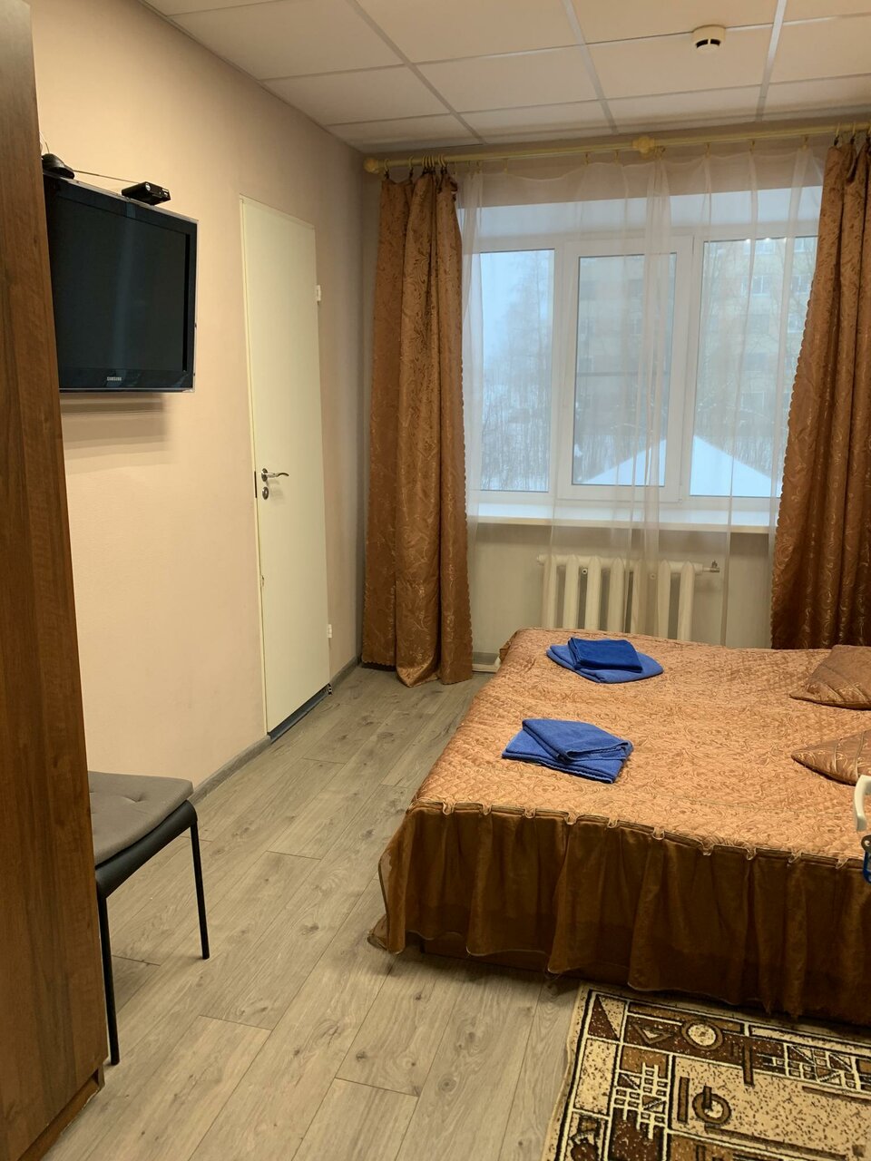 Очень тяжело переночевать в этом городке, т.к многие едут на Соловки. Но нам повезло)). Обычный двухместный номер. Телевизор не возможно было смотреть. Спутник ооочень плохо ловил. И в душе не возможно помыться: вода или холодная или горячая, и нужно было поймать момент в 3 секунды, когда она смешивалась)). Еда только под заказ, т.к привозят автобусы и кормят группы. А когда тетки из группы стали в 6 утра бегать по этажу, обсуждать зубную пасту и как спустить вниз чемоданы, хотелось их стукнуть)). Дом деревянный, стены тонкие, уважайте других постояльцев!!!