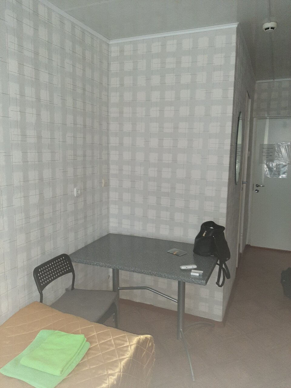Расположение не очень удобное, на окраине. Номера хорошие, есть большой стол, если надо поработать, но нет никакой посуды в номере, чайника и холодильника