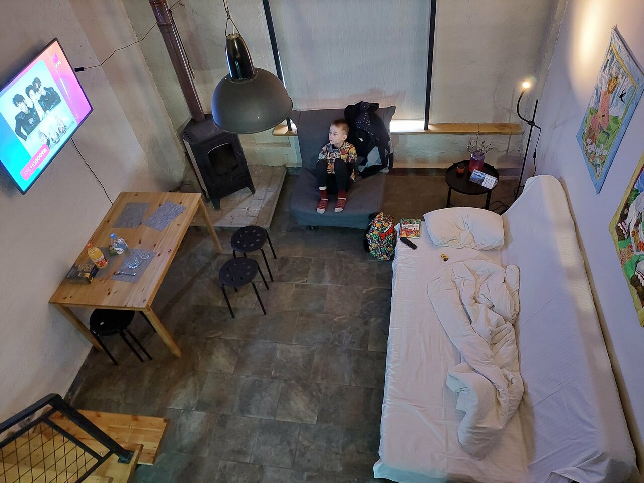 Действительно ‘странное место’.Снаружи гараж, внутри вполне себе современный лофт, с койками на подиуме под потолком, детям очень понравилось. Чистые, мягкие постели, уютная оборудованная кухня, безупречно чистая посуда. Современная ванная с новой сантехникой. Из минусов — полное отсутствие звукоизоляции в некоторых номерах, нужно договариваться с соседями, чтобы в одно время ложиться спать. Для ночёвки во время путешествия идеальный вариант.