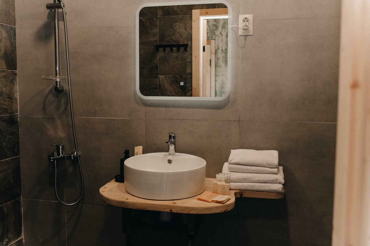 Довольно интересное место. Ночевали одну ночь по пути в Мурманск. Были в самом большом номере. Стиль лофт только с типа русской печкой. Не
