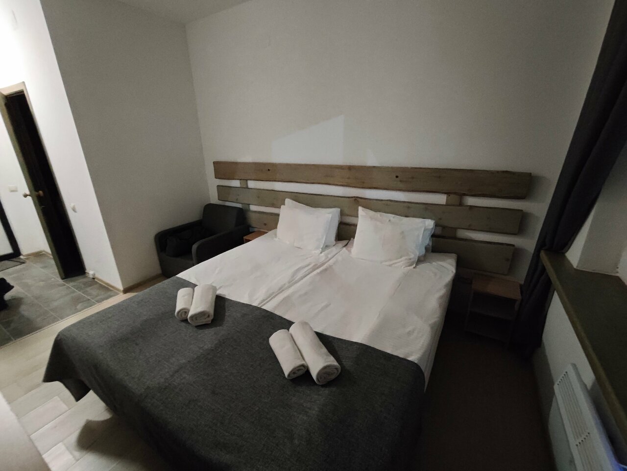 Отличный отель! Останавливались там уже 2 раза. Первый раз когда приехали, не поняли ничего, потому что снаружи кажется, что это какие-то гаражи))) (а это и были раньше гаражи) Но не пугайтесь, внутри просто класс! Очень уютно, необычно, чисто. Подкупает маленькая печь, которую можно самому затопить! Сразу становится тепло, приятно пахнет печкой! Мягкие кровати, удобный диван, мини кухня с чайником и микроволновкой. Завтрак оплачивается отдельно (450 руб). В него входит каша на выбор + яичница с сосиской, + блинчики или сырники. Бутерброды, чай, кофе на шведском столе! Есть небольшой магазинчик с сувенирами и карельскими продуктами. Отзывчивый персонал и хозяйка! ОЧЕНЬ РЕКОМЕНДУЮ!