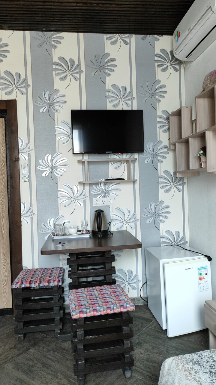 Номер оснащен телевизором с плоским экраном, кондиционером, холодильником, прикроватными тумбочками, а также санузлом с душевой кабиной и банными принадлежностями.
