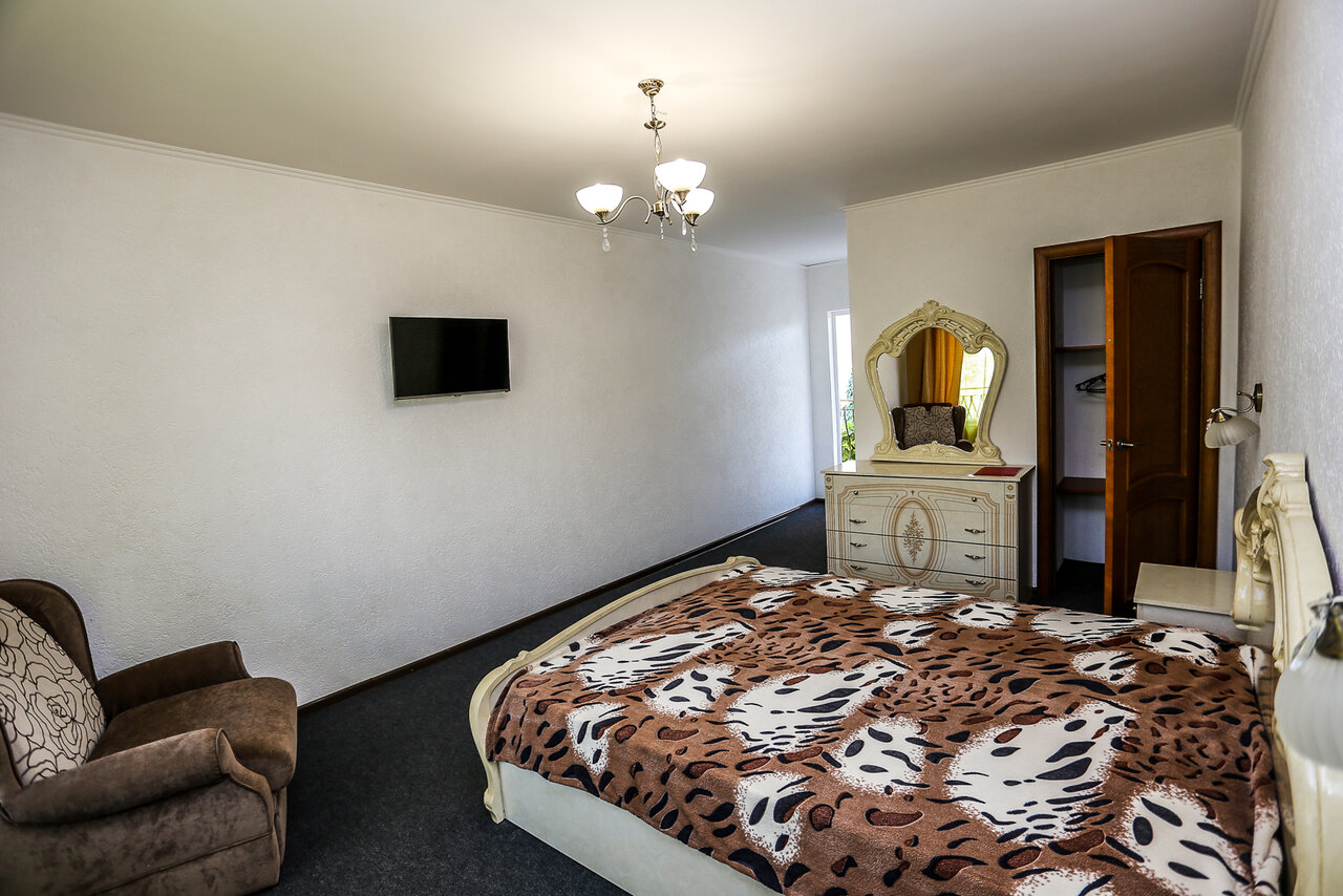 Отдыхали в гостевом доме в июле 2024 г, снимали 2-ком люкс , люксом конечно этот номер не назовешь , только цена соответствует названию , остальное нет , мебель старая, сантехника тоже , фен вообще с оголенными проводами , моющих средств нет , а туалетная бумага серая самая дешевая. Есть проблемы с водой , в течение 12 дней , 3 дня не было воды никакой . Отдых с детьми и без воды это серьезная проблема . Уборка была каждый день , но убирались плохо( то пол не протрут, то корзина вся в пятнах , то зеркало грязное ). Территория маленькая , но ухоженная .