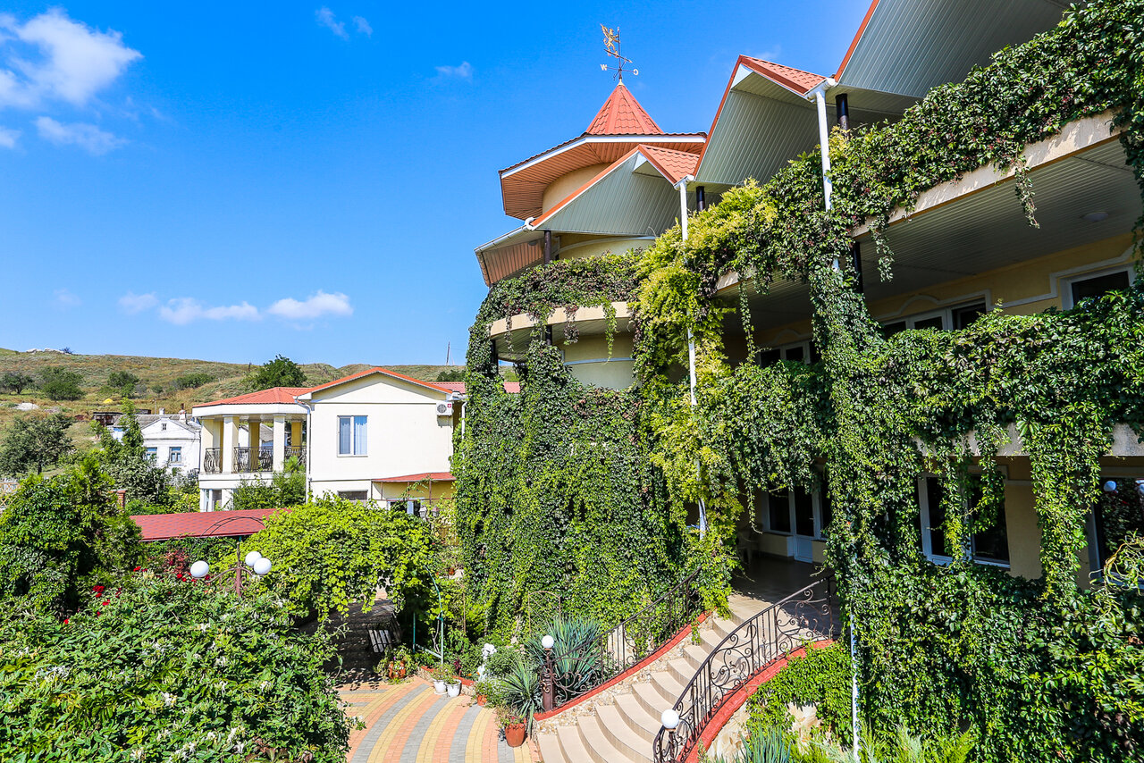Это самый лучший отельчик в Героекве, а может и в Керчи. Несколько раз там был. до моря совсем недалеко, внутри прям сказка, уютно и красиво. Персонал приветливый. Хоть жили на 4м этаже, без лифта, но зато какие виды. Кодней есть, от жары прям спасает. Питаться можно в соседнем отеле, есть кухня, мы там готовили, есть место с мангалом.