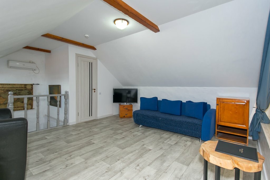1-комнатный номер : 1 диван-кровать(1,5 m) 1 двуспальная кровать(2 m), максимальное количество — 4 человека, 2 этаж, отдельный вход, 30 кв.м) Просторный уютный номер, идеально подходит для семьи с детьми. . Авторский дизайн, спутниковое ТВ, мини-бар,