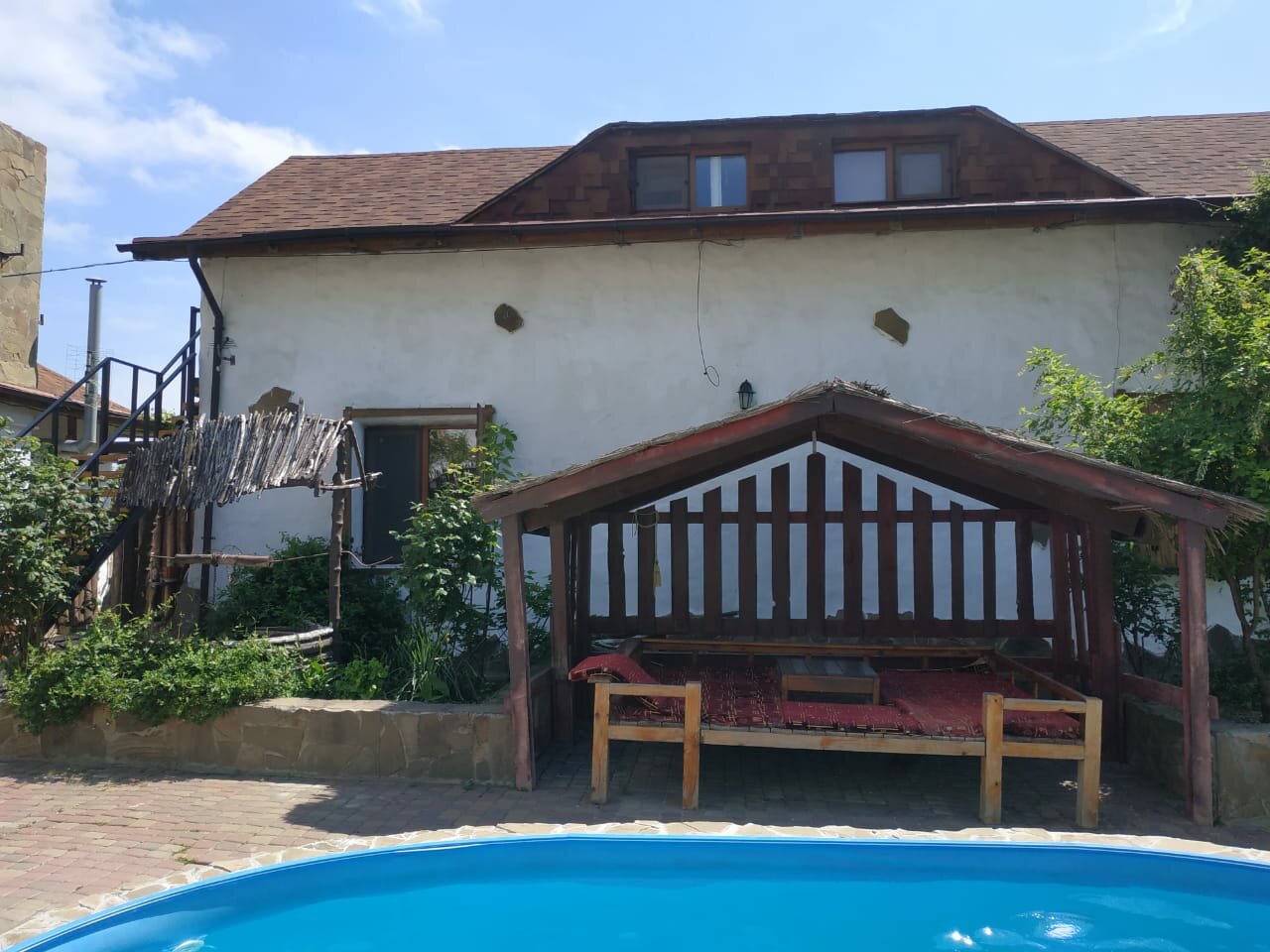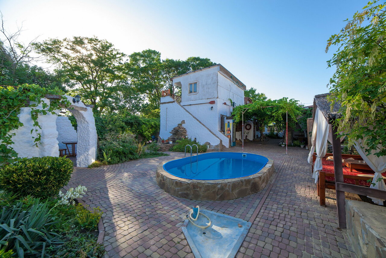 - Спокойная и зеленая территория.; Вкусные завтраки.; Наличие бассейна (в т.ч. с подогревом).; Хорошая гостиница, интересный интерьер.; Уютные и стилизованные номера.