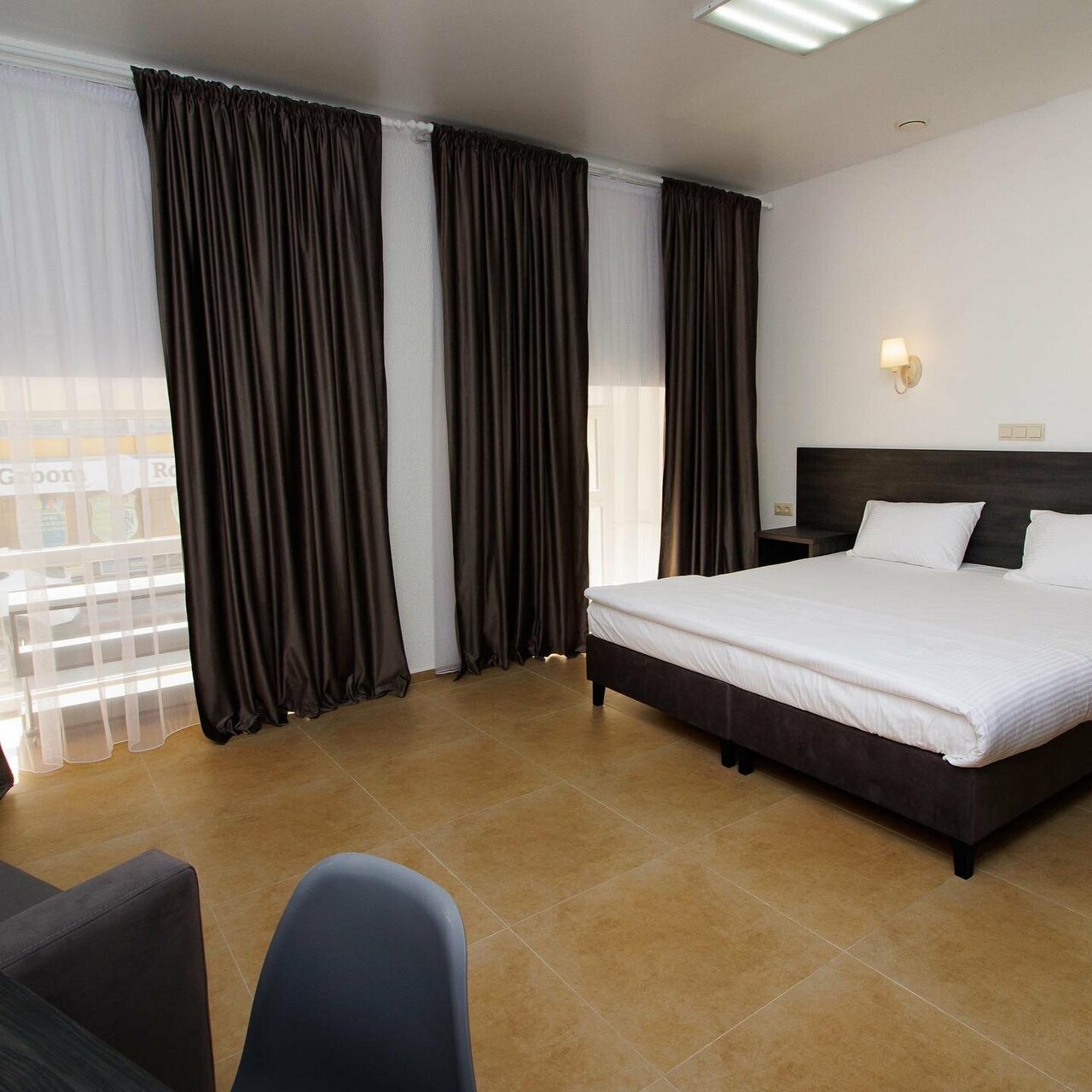 Номера находятся в подвальном помещении, нет окон, и сразу не понятно, ибо вместо них на стене шторы — открыл, а там стена((. Ресепшена на входе нет, он где-то в подвале — самому не найти, информационных табличек нет. Селит в отель по звонку какой-то разнорабочий в робе, не внушающий доверия. Вода практически не идёт, нет напора. Холодно, нет отопления, на полу холодная плитка. Жуткая слышимость из коридора и от соседей! Внутренней территории и стоянки нет, курить негде, только перед отелем, на центральном входе(( Поставить машину — проблема, нет места, всё занято, а если и втиснешься, то очень большой трафик мимо и узкий проезд, есть риск повредить машину. Нет бесплатной отмены брони!!! За углом, в этом же здании, есть хороший отельчик, останавливались там ранее — жалею, что не доехала туда, там и дворик и терраса со столиками для курящих, и вкусный ресторанчик с завтраками при отеле. Не рекомендую!!!