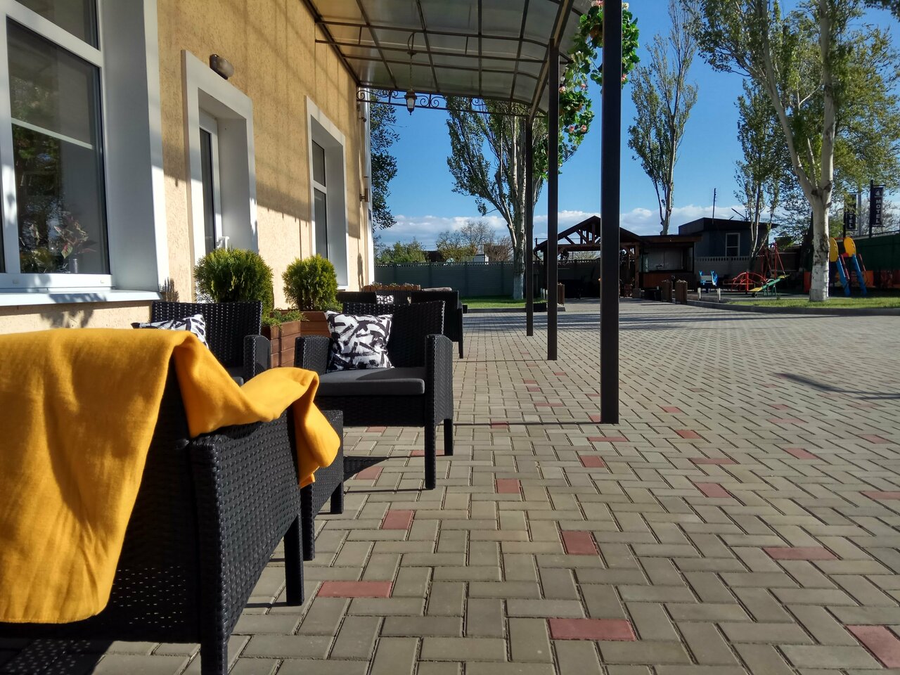 Всё очень понравилось. Всё новое, чистое. Матрас и подушки новые удобные. Есть детская площадка, отдельное место под курилку. Еда вкусная. Администратор очень внимательная. А 4 звёздочки, то что территория не большая. Отель рекомендую!!!