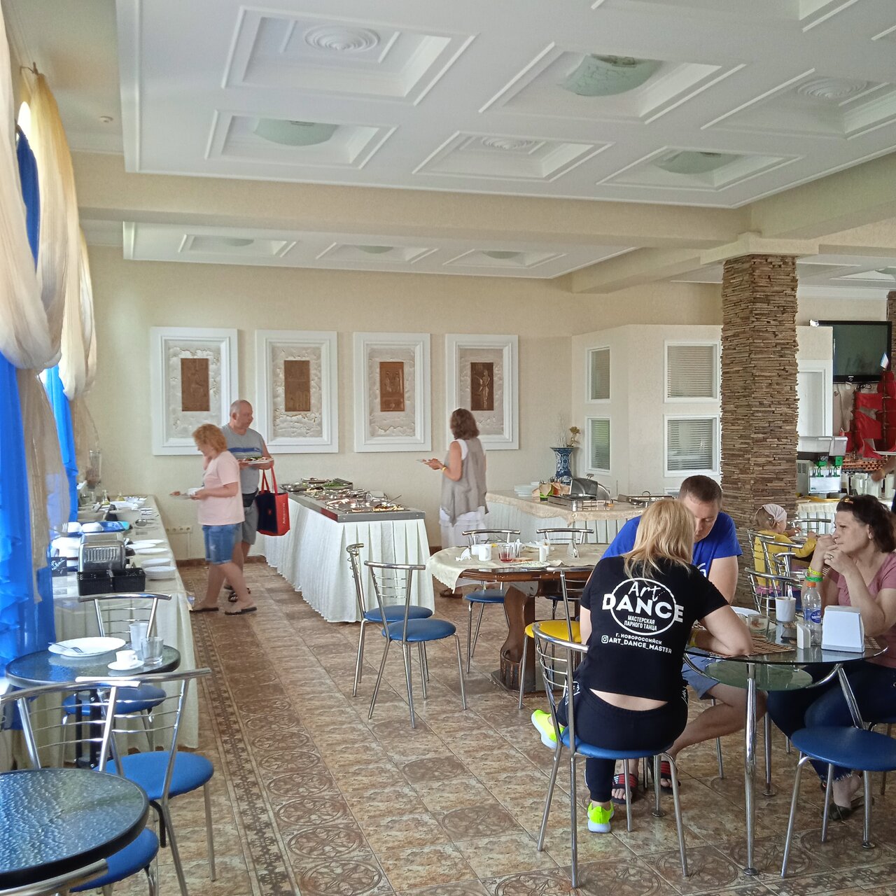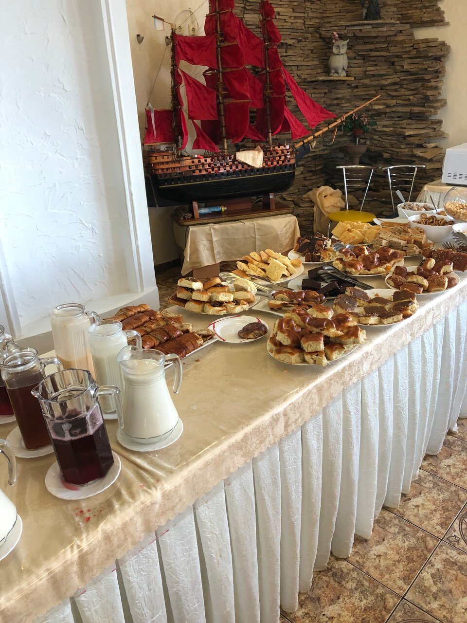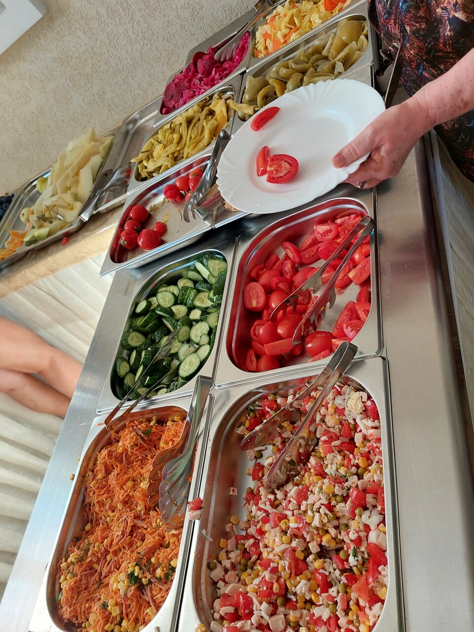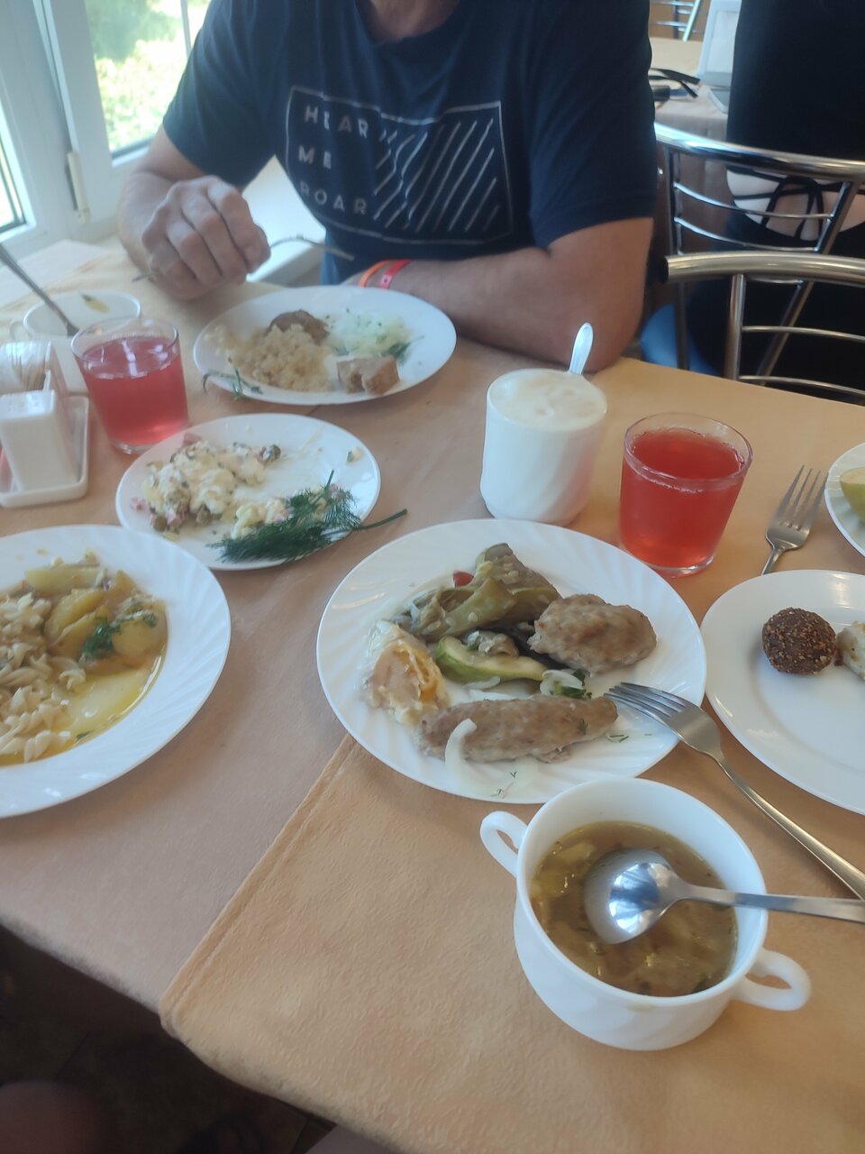 Отдых эконом класса, шведский стол присутствует, но выбор очень посредственных (что не скушали на завтрак, добавят в салат или выпечку на обед). Море (хотя до моря ещё далеко) купаетесь вы в Керченском проливе, вода вся в водорослях и Огромных медузах. Не рекомендую это место