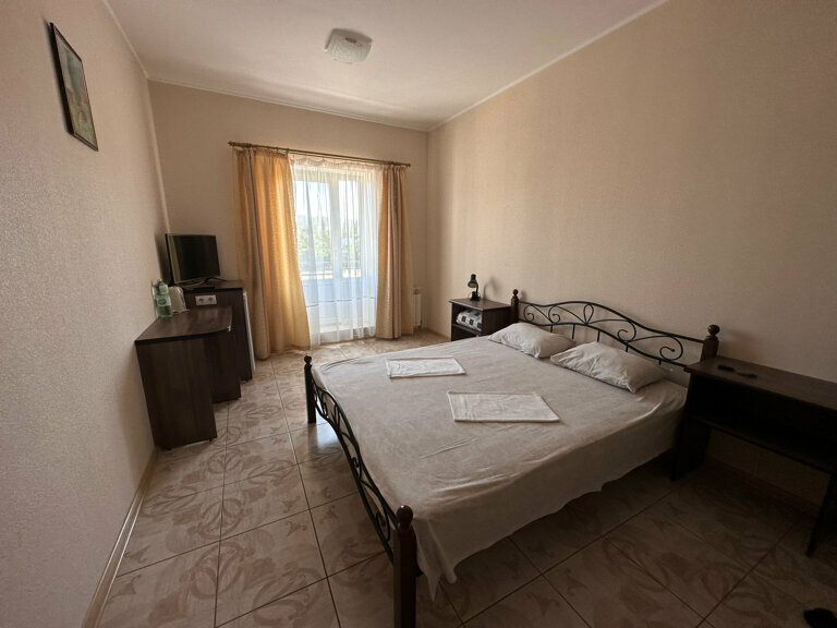 Останавливались с ребёнком для отдыха перед большим путешествием по Крыму на одну ночь Понравилось все! Очень приветливые и гостеприимные хозяева. Отличный номер со всем необходимым (чай, кофе, чайник, холодильник, бутылка воды, телевизор, wi-fi, парковка перед домом) Завтрак — отдельная история) на выбор несколько каш, яйца тоже в нескольких вариантах исполнения, чай, настоящий свежесваренный кофе, хлеб, масло, сыр, колбаса Даже на одного взрослого было много. Ребёнку тоже приготовили отдельную порции каши. Все по-домашнему вкусно Возможно воспользоваться общем кухней для самостоятельного приготовления Самое главное — везде идеальнейший порядок До набережной неспела с коляской дошли быстро, но дороги действительно не очень хорошие. Но это было уже не так важно для нас Говорят, что у нас нет сервиса в туризме. Врут, ЗДЕСЬ ОН ЕСТЬ!