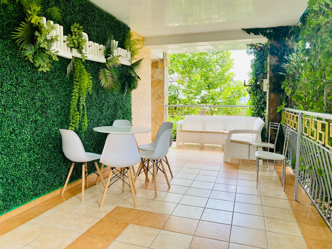 Приятная, уютная, отзывчивые хозяева и администрация. Хорошие номера, чистые. Территория приятная, море рядом. Если ты была ещё общая кухня- было бы совсем шикарно. Завтраки не очень конечно, сейчас даже в маленьких виллах, где есть столовые предлагают блюда на выбор или несколько блюд на завтрак. Мы оплатили, но не ели, потому как думали что будет каша и оладьи, а оказались ленивые вареники и сыр с маслом, но мы такое не едим… но это мелкая неприятность не испортила общего положительного впечатления!