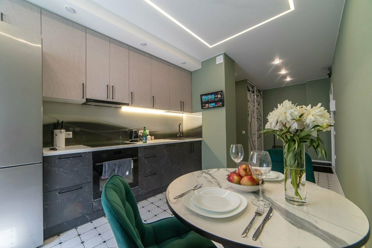 Все апартаменты с качественным ремонтом и современной отделкой, полностью оборудованной для комфортного проживания бытовой техникой и всем необходимым.